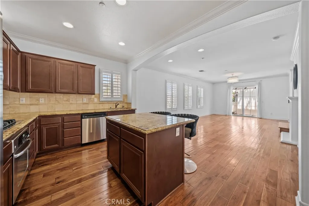 Welcome to your dream home in the desirable Winding Walk community of Agave! This exquisite 3-bedroom, 3.5-bathroom condo offers a spacious 1,581 square feet of modern living space, designed for comfort and style. This location is conveniently located steps away from the Otay Ranch shopping district with a bevy of restraunts, shopping, and entertainment. Step inside to discover a thoughtfully laid-out tri-level floor plan. The entry level boasts a convenient attached 2-car garage with EV Charging and plenty of storage space, a cozy bedroom with attached full bathroom, perfect for guests or a home office. Ascend to the second level where an open-concept living area awaits. The kitchen, equipped with stainless steel appliances and a step-in pantry, features a comfortable kitchen island with bar seating, ideal for entertaining. Adjacent, the living room is highlighted by a gas fireplace and opens to a charming outdoor balcony, providing a perfect spot for relaxation. The top floor is dedicated to the luxurious primary suite, featuring a generous walk-in closet and an en-suite bathroom. An additional bedroom and bathroom complete this level, offering ample space for family or visitors. The home has been upgraded with premium dark wood flooring, plantation shutters and crown moulding throughout. Custom bedroom closet built-ins offer sophisticated organization for your wardrobe. Residents of this vibrant community enjoy access to top-tier amenities, including pools, spas, a gym, and multiple recreation areas. This condo perfectly blends comfort with convenience, making it an idea