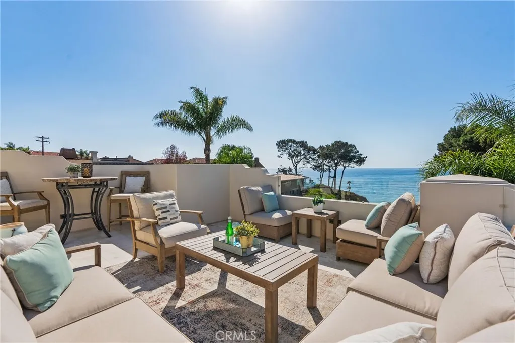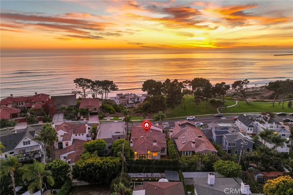 Located on a scenic drive overlooking Capistrano Beach, this custom elegant residence offers a magnificent unobstructed view of the Pacific Ocean and its coastline. Right across from the Pines Park, it is as close as you can get for a great view without the busy traffic down by the PCH, but yet, close enough for all the exciting food, shopping, and events in the lively Capistrano Beach neighborhood of Dana Point. The residence features four bedroom-suites, three upstairs and one downstairs with a separate powder room downstairs as well. Upon entry, the sun-bright living room with great view of the park and the ocean will make you wants to sit down and stay. But it gets better for the upstairs balcony by the loft where you can enjoy relaxing and unwinding moments or even a romantic dinner by the ocean. When you walk up the stairs to the rooftop patio, you will be treated with the best and spectacular view of the ocean and the surroundings! Chefs kitchen comes with custom cabinetry throughout, 6-burner Thermador stove and other selective appliances. This cozy beach house has a large master bedroom suite completes with a retreat area with a fireplace, a separate study or office area along with an exercise/yoga room and a balcony for the backyard view. Landscaping of this house has been tastefully updated with colorful array of various plantings in both front and back yard. Enjoy your backyard built-in BBQ perfect gathering place for family and friends. This house has also been renovated with refinished wood floor, new interior and exterior paint, new carpet, new recessed ligh