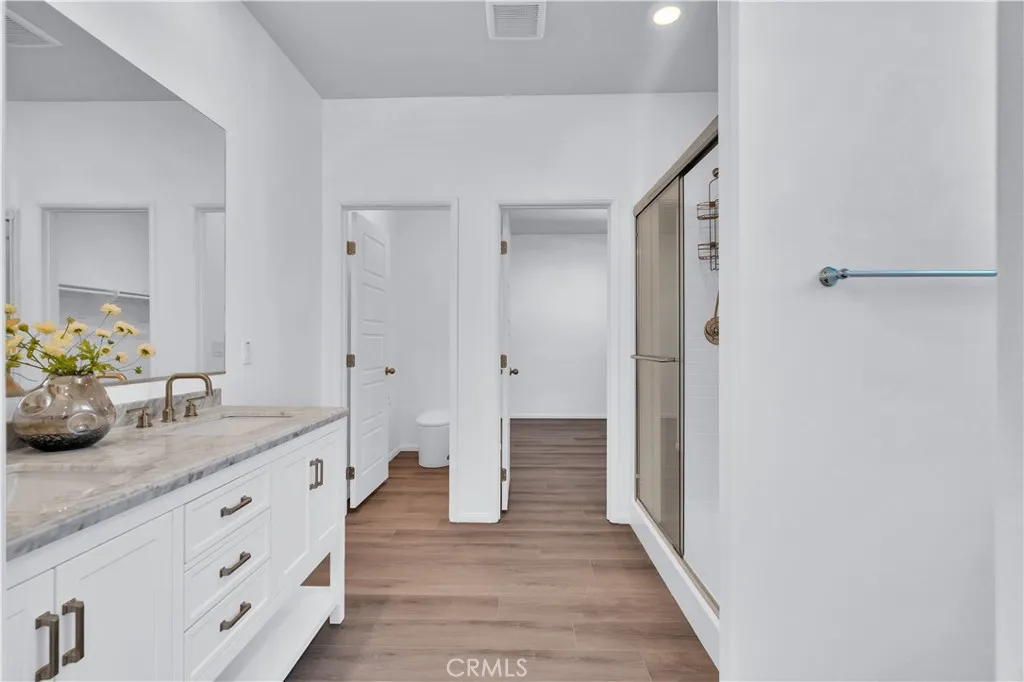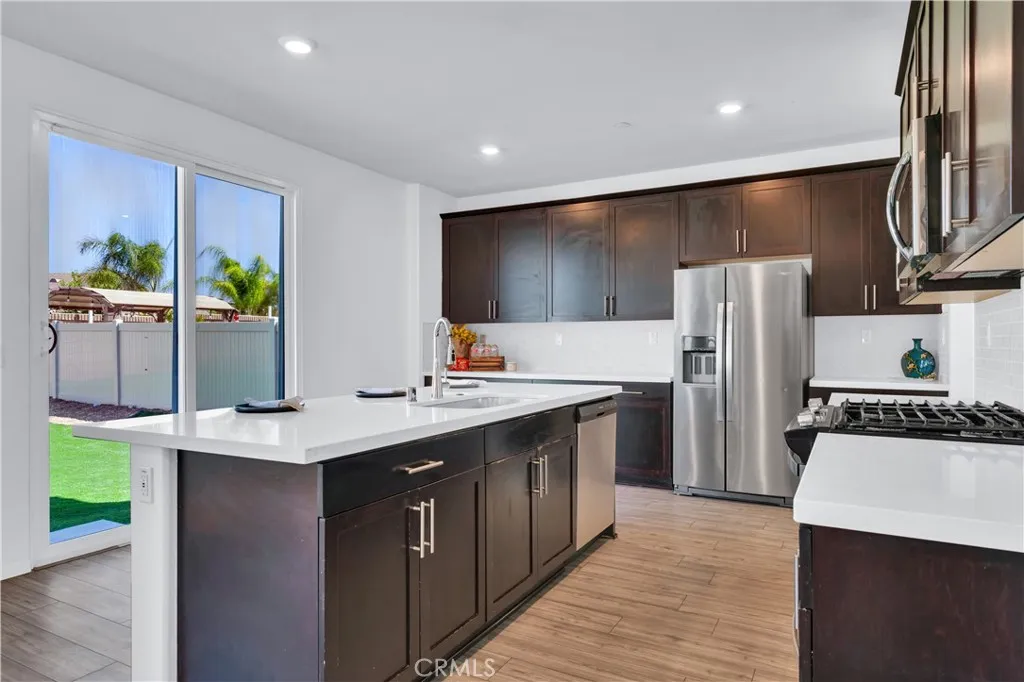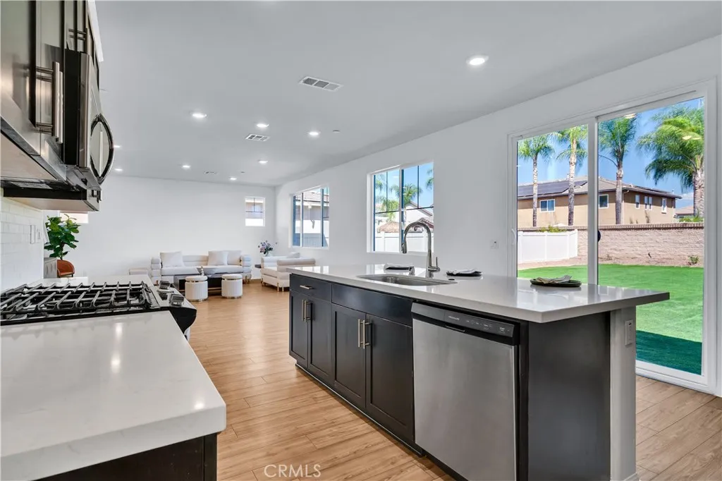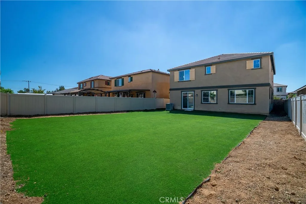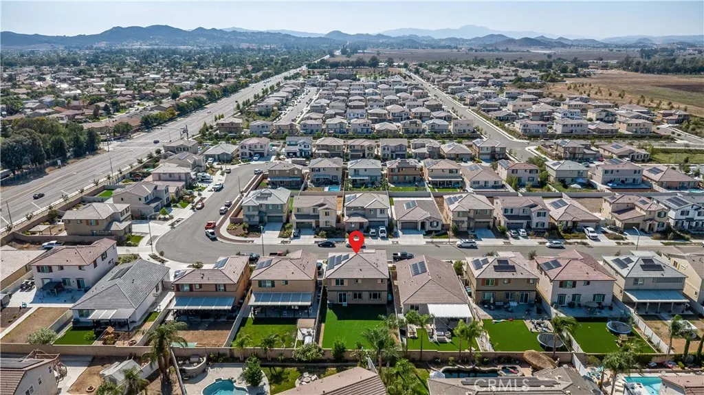 Price to sell! Upgraded Wall Panel! New Electricity Smart Toilets! One Bedroom Downstairs and Pool-size backyard! This Menifee home offers 2,900 sq. ft. of modern living on a 6,286 sq. ft. lot with 5 bedrooms and 3 full baths, each featuring high-tech electric smart toilets. The open floor plan highlights upgraded modern wall panels, a sleek kitchen with walk-in pantry, and a spacious primary suite with spacious walk-in closet. 12 leased solar panels adds energy efficiency, while the pool-size backyard is ready for your personal touch. Ideally located near I-215, shopping at Target, Kohls, and Newport Plaza retail/dining, and within the Menifee Union School District. The city boasts 48 parks, a new community center in progress, sports complexes, and the Menifee Global Medical Center, offering a safe and family-friendly environment with plenty of recreation and convenience. Dont miss this opportunity to own this home in the desirable neighborhood!