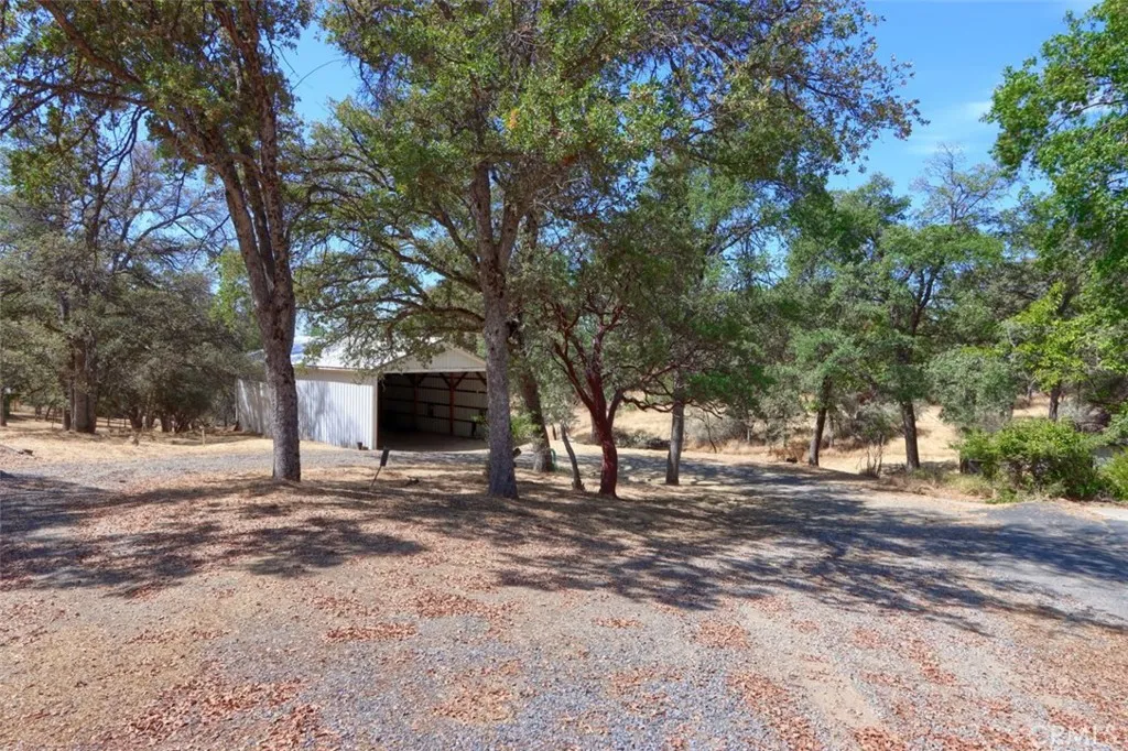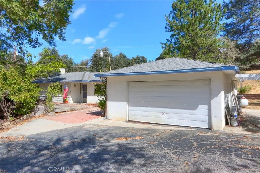 Wonderful Sky Ranch offering! This 3 bedroom, 2 bath ranch style home has new laminate flooring, living room with fireplace insert and family room with free standing wood stove and a huge shop with an excellent location close to Yosemite National Park and Bass Lake! From the time you enter the gated driveway, you will enjoy the beautiful trees and gentle 1.22+/- acres of land. When you get to this special home you'll notice a favorite spot in the front yard! A wonderful deck/patio area is ideal to enjoy the peaceful view with a glass of wine and good company! The floor plan is spacious with the kitchen on the right as you walk in for easy grocery delivering and the heart of the home is a large living room just steps away. Lovely large windows to take in the views and let the natural light in, sliding glass door to the back covered patio, woodstove insert with brick hearth, garage access and so much room. The dining area brings you into the kitchen area with a built-in hutch cabinet and matching informal dining table with built-in bench seats. The kitchen has built-in appliances including a dishwasher, electric range, range hood with tile counter tops and extra cabinet space. The family room is is just off the dining area through a special storage/pantry room for your additional kitchen gadgets or bake ware. The family room has track lighting, a wood stove, sliding glass door to the outside side patio and would make a great space for the kids' video games, a home theater set-up for family movie night or a huge craft room. 2 guest bedrooms with a full guest bathroom with upgr