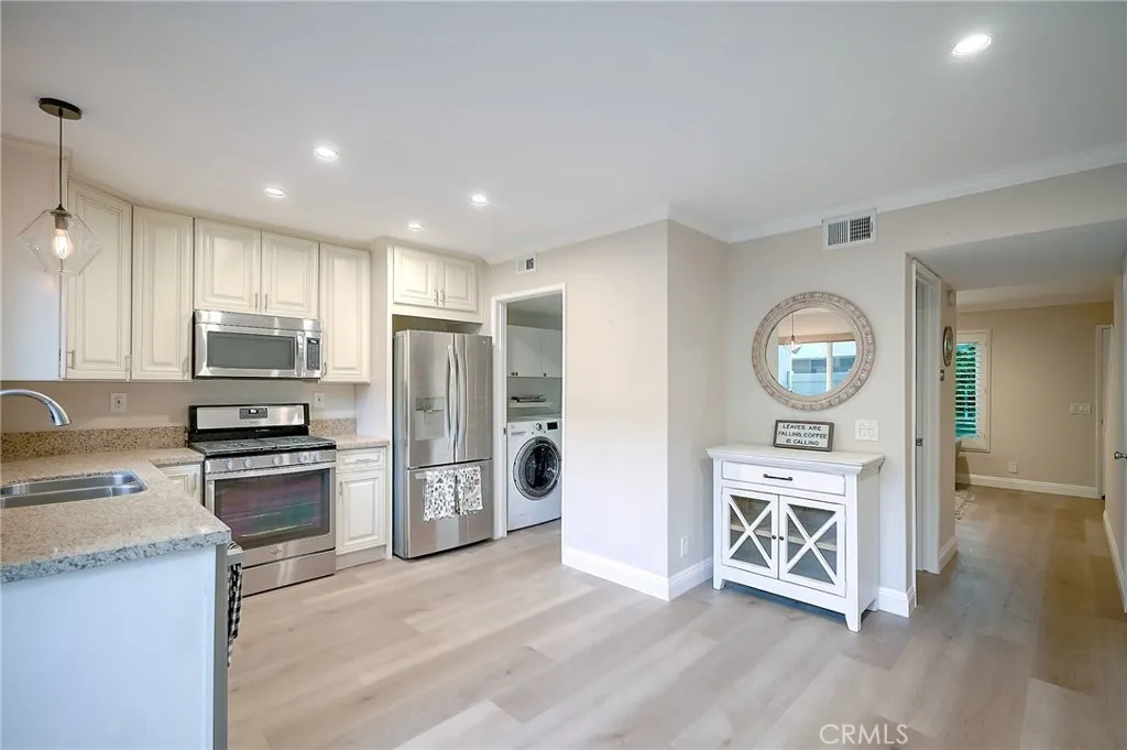 Located in the sought-after Wildwood neighborhood, 479 Serento Circle offers comfort, convenience, and stylish upgrades throughout. This two-bedroom, one-and-a-half-bath townhome is filled with thoughtful improvements that make daily living feel elevated. The bright, spacious living room welcomes you with a custom fireplacebeautifully clad and framed by a tailored hearth and mantelcreating a true focal point. Wide plank laminate wood flooring flows throughout the first level, complemented by fresh paint and upgraded baseboards. The kitchen is equally impressive, featuring quartz countertops, newer cabinetry, and high-end stainless steel appliancesincluding a brand-new Bosch 800 Series dishwasher (used once, $1,500). A separate indoor laundry room and a downstairs powder bath complete the first floor. Upstairs, you'll find two generously sized bedroomseach offering excellent storage, updated carpet, and clean finishes. One bedroom includes attic access and a third large closet with a separate vanity area. The full bathroom has been refreshed with modern tile flooring and a clean, timeless design. Additional upgrades include dual-pane windows, plantation shutters, new custom shade in the kitchen, and a nearly new central HVAC system (1 year old). The private patio is ideal for hosting and relaxing, with direct access to two covered parking spots, newer vinyl fencing, and a storage shed for added utility. Appliances including refrigerator, washer, and dryer are included. Furniture, including a bed and large-screen TV, is negotiable. Enjoy the best of Wildwood livingjust moment