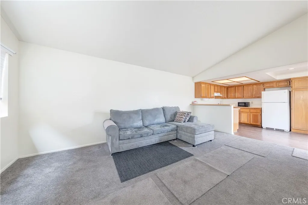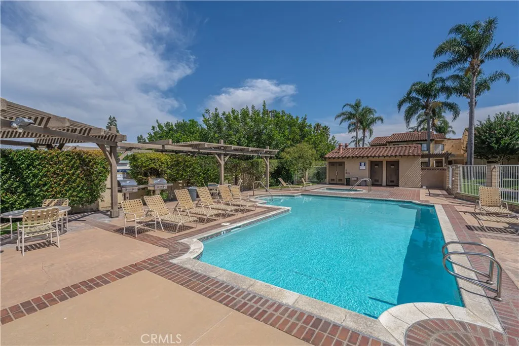Rare End Unit with its own private entrance and private front patio. There are only a handful of these units in the complex. Upon entering the home, you will be greeted by soaring high ceilings that create a spacious and inviting atmosphere. The kitchen is bright and airy, equipped with ample counter space and cupboards, plus a convenient serve-over bar. Adjacent to the kitchen, a private outdoor balcony offers an inviting setting for quiet mornings enjoying your coffee in the fresh air. The generous primary bedroom features lofty ceilings with access to the inside laundry, closets and bathroom. The unit comes with a washer and dryer for your convenience, along with a newer water heater, fresh carpet, new paint, new stove, and a beautifully resurfaced private front patio. You will also enjoy the ease of a one-car garage #28 along with additional guest parking. The community boasts outstanding HOA amenities, including a sparkling pool, relaxing spa, outdoor cooking area, and plenty of tranquil spaces to unwind. This location is perfect for commuters and is just minutes away from Fountain Valley's highly-rated schools, expansive parks, diverse restaurants, convenient shopping, and the stunning local beaches of Huntington Beach and Newport Beach.