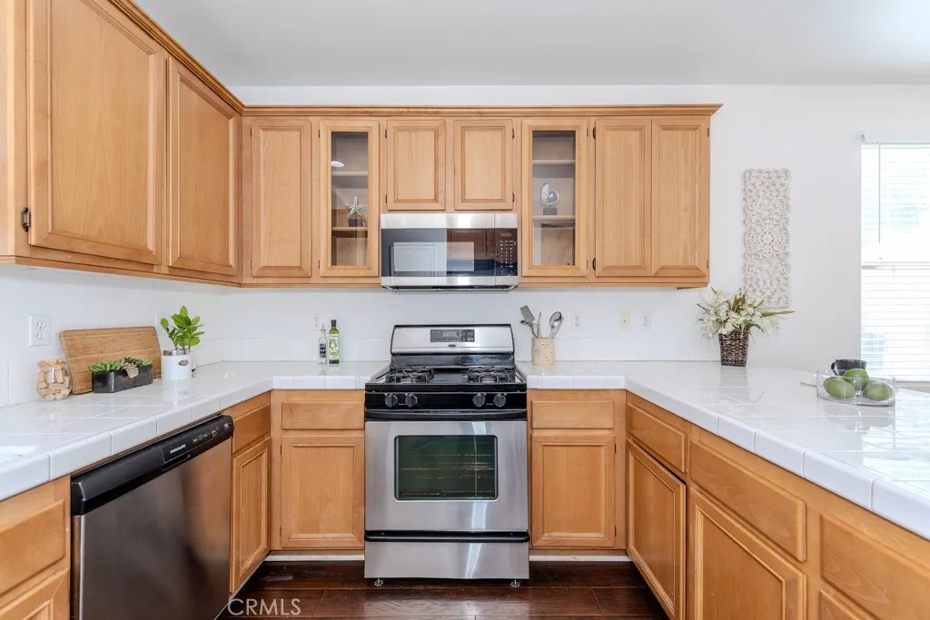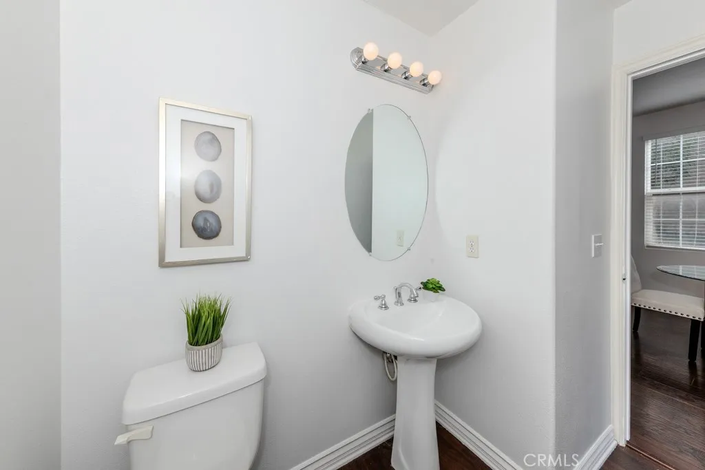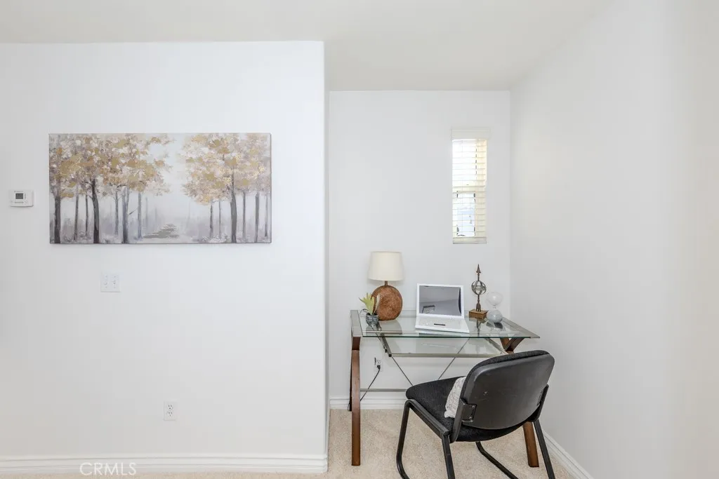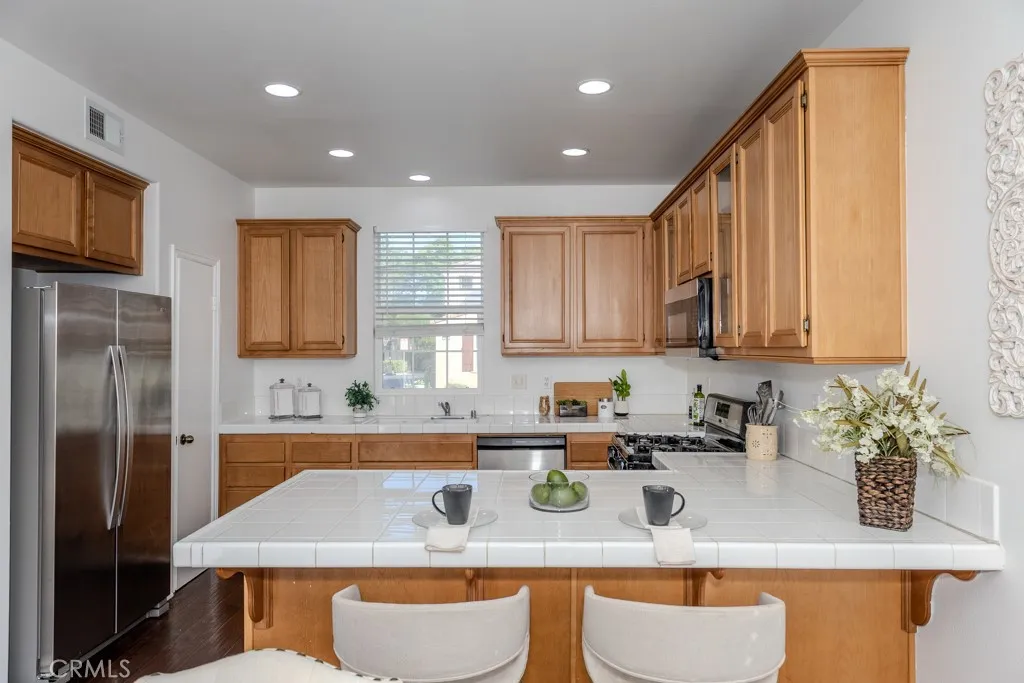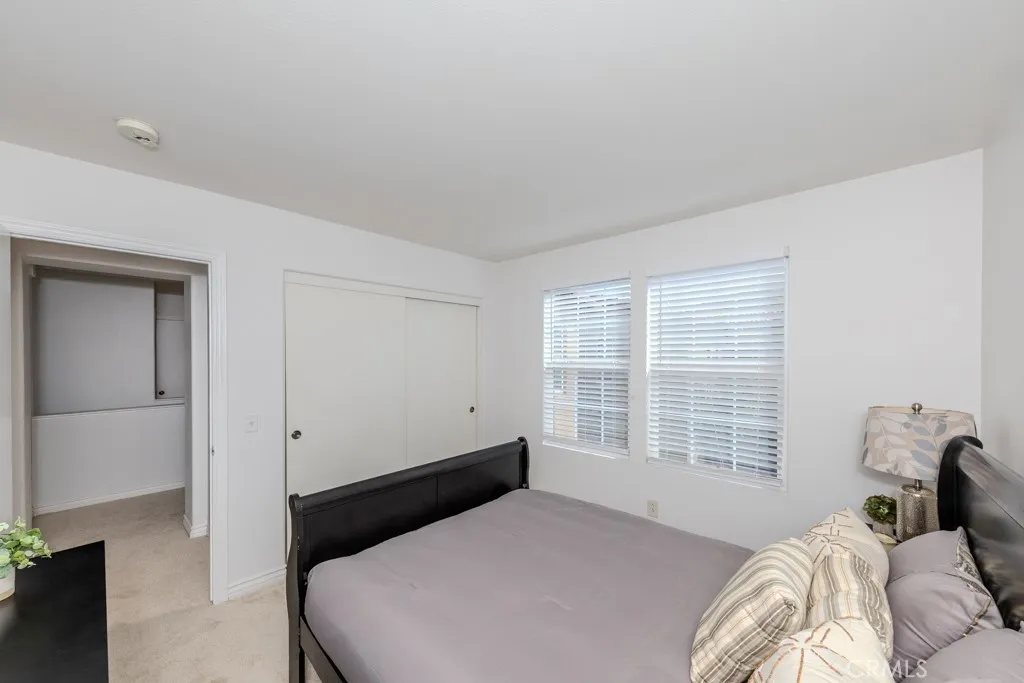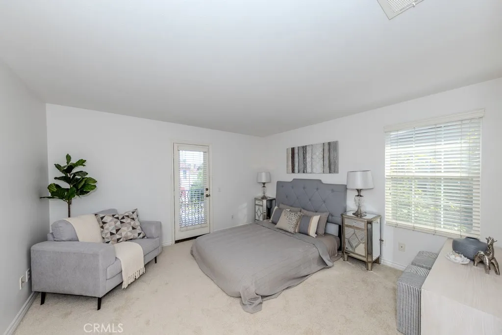 Detached single-family home in Dos Lagos within the Citrus Springs neighborhood. Located at 2874 Echo Springs Dr, Corona, this two-story property offers 3 bedrooms, 2.5 bathrooms, and 1,682 square feet. A major advantage is its proximity to The Shops at Dos Lagos, where shopping, dining, golf, and parks are all within walking distance. The entry opens to laminate wood flooring across the first level. To the right, the living room features high ceilings, abundant natural light, and a fireplace. To the left, the kitchen includes upper and lower cabinetry, stone counters, a breakfast bar, recessed lighting, stainless steel appliances, and a walk-in pantry. The adjacent dining nook offers double doors that open directly to the backyard. A half bath and under-stair storage sit just off the kitchen, and interior access leads to the two-car garage. Upstairs, new carpet runs throughout. The primary bedroom features high ceilings, a Juliet-style balcony, and a large walk-in closet. The en suite bath includes laminate wood flooring, dual sinks, a soaking tub, a walk-in shower, recessed lighting, and a separate toilet room. A loft-style landing between bedrooms offers a flexible space for work or reading. Two additional bedrooms with mirrored layouts share a full bath with laminate flooring, a single sink, and recessed lighting. A separate laundry room upstairs provides built-in upper cabinets, a utility sink, and a folding counter. Outdoors, the backyard includes a concrete patio, a block wall for privacy, a garden bed, and a turf area for low-maintenance use. Citrus Springs offers c