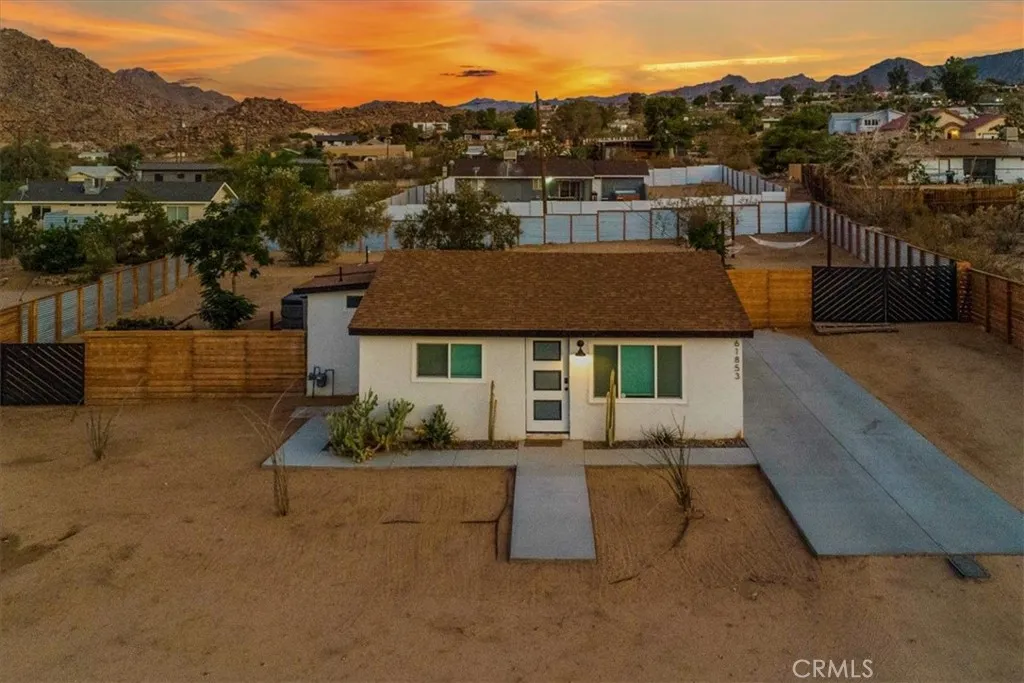 This one is really a must see with a great price! This newly renovated 2-bedroom, 1-bathroom home blends modern upgrades with desert charm, this one is five minutes from the Park Entrance, one minute from downtown, ten minutes away from 29 Palms, and the vast desert area gives this property a surreal feeling. The property has been a successful STR for years, and the upgrades that you see have been completed over the last two years. The privacy fence around the property gives a secluded feeling while enjoying the night sky and spa in the backyard! The open-concept living area is filled with natural light, while the updated kitchen features quartz countertops and new appliances. Both bedrooms are spacious with large windows, and the remodeled bathroom boasts contemporary finishes. On the street that the property cities is a perfect position to get great views of the whole landscape and still have the closeness of city life! Come check this one out!