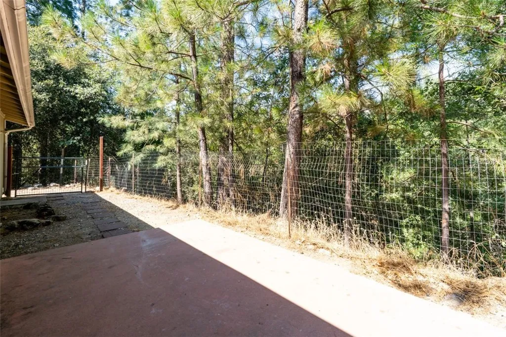 Peaceful and private, this 4 bedroom, 3 bath home has added potential with a garage conversion ADU studio apartment with private bathroom and kitchenette! The main living space offers a living room with vaulted pine ceilings, large windows to let the light in and enjoy the year' round views, lovely window seat and a cozy fireplace. The dining area is convenient to the kitchen, has a great garden window box for fresh herbs and the sliding glass door leads to the back patio which is great for barbecues and entertaining friends! The kitchen has a bunch of counter space with a breakfast bar, stainless steel appliances including a free standing range, microwave, dishwasher and refrigerator. The extra-large laundry room has a utility sink and storage pantry space. The hallway takes you to the guest bedrooms, guest bath with shower/bathtub and the primary bedroom has 2 walk-in closets with a sliding glass door to a patio area out back. The back yard area is fenced which makes it great for your little kids or dogs. The studio has recessed lighting, ceiling fan, small kitchenette with sink-microwave-cabinets and small refrigerator and the private bath room has a shower. It would be great to use as a monthly rental or Air B&B rental or for guests or in-laws! Live surrounded by your own mountain retreat on 1.15+/- acres among beautiful trees with cooler temperatures and a seasonal creek. ! If that isn't enough nature, amazing Yosemite National Park and beautiful Bass Lake are just minutes away!