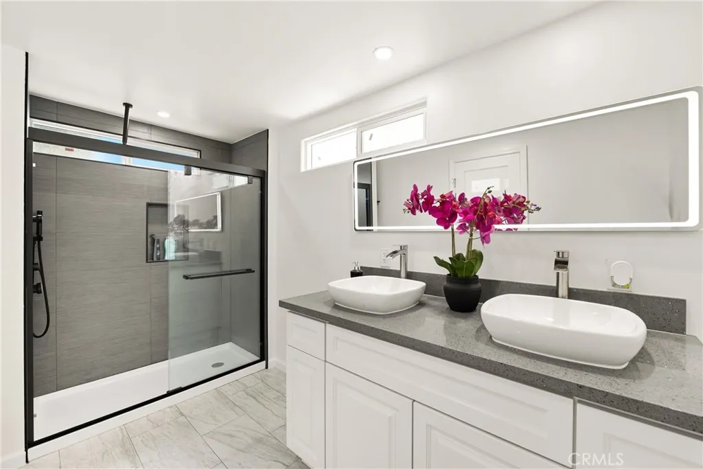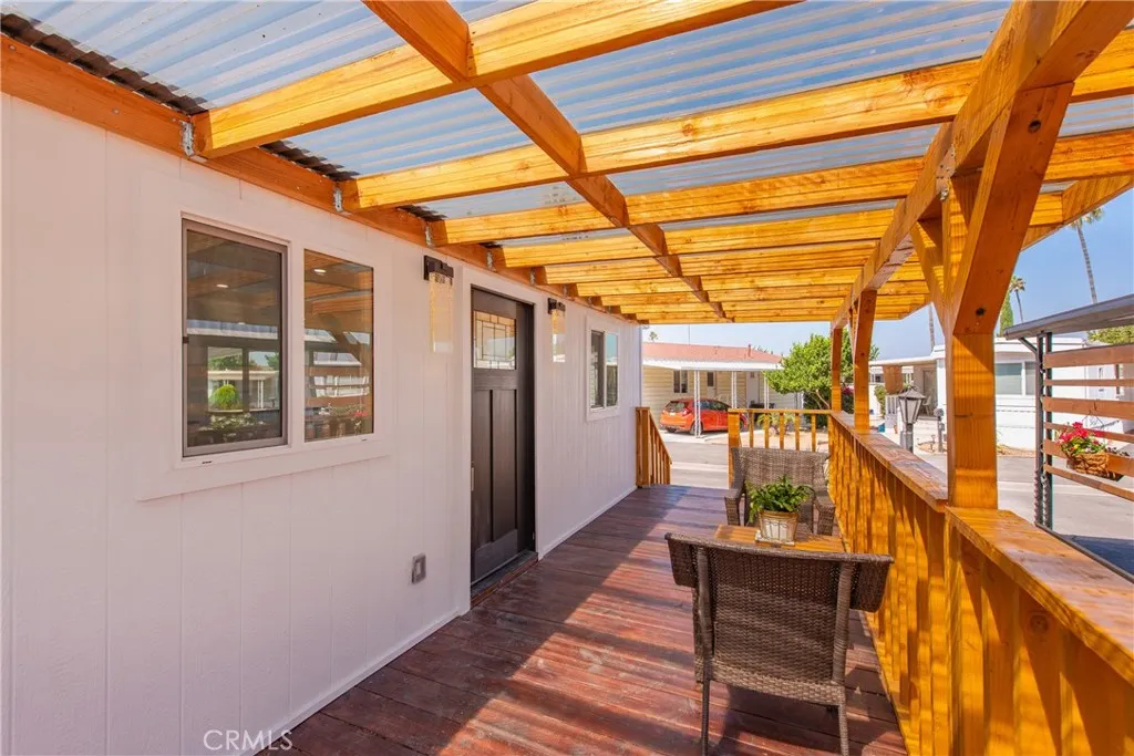 Exquisite 2-bedroom, 2-bathroom luxury living in the beautiful senior community of Casa Del Norte, located in the highly sought-after City of Camarillo, California. You are greeted onto the property with an indigenous perennial garden with a handcrafted deck, stained in honey gold and cherry oak a perfect environment to unwind your day. Step inside to a bright, airy living space with a seamless open-concept layout, with white opaque doors and recessed lighting. The kitchen features black granite countertops, a moveable kitchen island, new kitchen cabinets, a stainless-steel sink with a sink system that allows you to cut vegetables, wash fruit, and dry your dishes at the same time. An extendable sink head pulls out and adjusts to a jet stream or a soothing shower for washing off the dishes. In the kitchen space, it has a laundry area for a stackable washer and dryer located behind an opaque door that blends perfectly.What we call our guest bathroom is like walking into a day spa. The floors have half-inch printed tiles from a Santa Barbara estate. The walls are clothed in ceramic tiles with an enclave to garage your bath amenities. The soak tub is just straight-up luxurious, with a Moen waterfall faucet that flows out of the wall. The matching sink vessel is made of porcelain with a stainless waterfall sink faucet. To top off the spa experience, we have added an oval touch mirror that has anti-fog and adjustable lighting. The second bedroom has a closet with twelve feet of hanging space, along with a built-in closet dresser and six-foot-six mirror slider doors. The master s