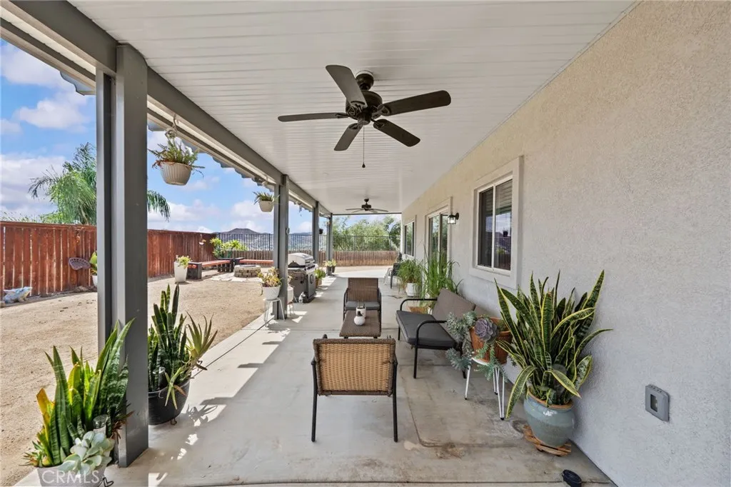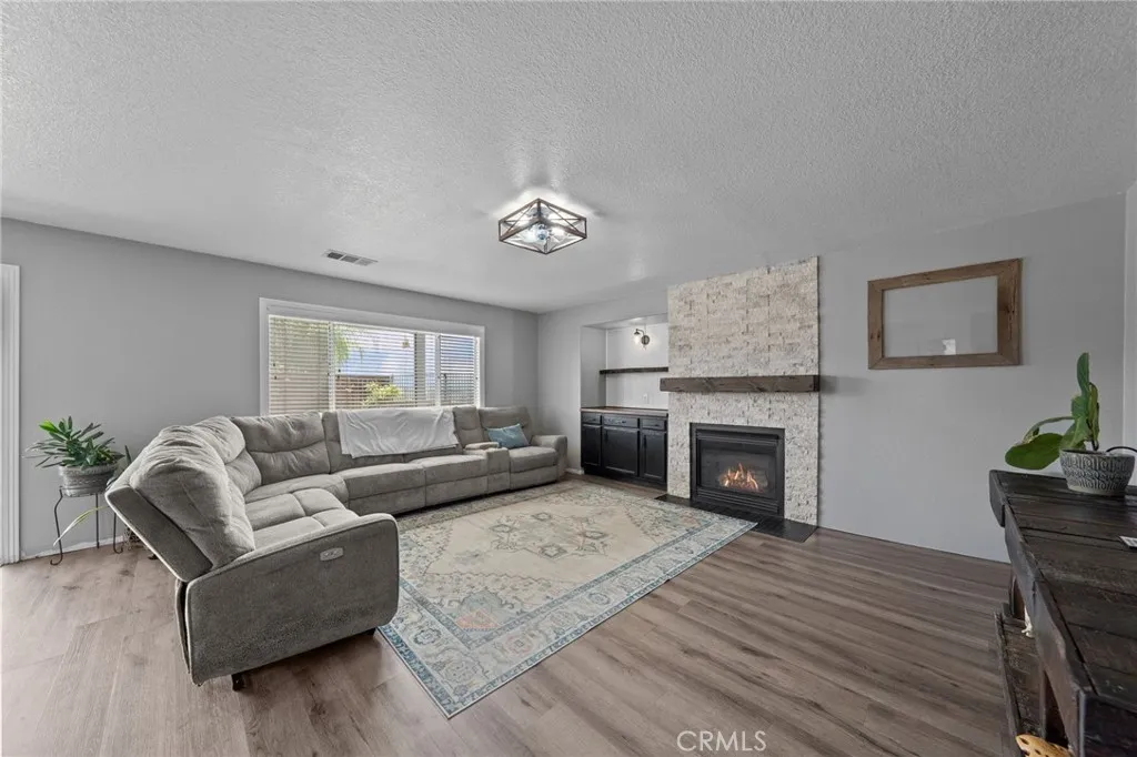 Welcome to this spacious and energy-efficient 4-bedroom, 3-bathroom home with a versatile bonus room that can easily be used or converted into a 5th bedroom. Located in the highly desirable Canyon Heights community of Menifee, this well-maintained property offers 2,648 Sq Ft of comfortable living space on a 10,019 Sq Ft flat lotperfectly suited for a future pool, play area, or entertaining space. The backyard currently features a charming garden area with plenty of room to expand. Step inside to find a welcoming formal room that can be utilized in a variety of wayshome office, sitting room, or dining space. The upgraded wood-look laminate flooring and freshly painted walls flow throughout the entire first level, adding warmth and modern style. The open-concept family room seamlessly connects to the kitchen, featuring a custom built-in cabinet and a cozy fireplace with a unique custom tile backsplash, creating a stylish and functional gathering space. One full bedroom and bathroom located on the main level perfect for guests, in-laws, or a private office. Three additional bedrooms upstairs, including the primary suite with a large walk-in closet and private en-suite bathroom. Bonus room upstairs can easily be transformed into a 5th bedroom, playroom, office, etc. Two solar systems with a total of 31 solar panels for maximum energy savings with a whole house fan for efficient ventilation, New window screens with sun screens for added cooling and privacy, Nest smart thermostats for climate control, Bluetooth-enabled sprinkler controller, Tankless water heater for endless hot w