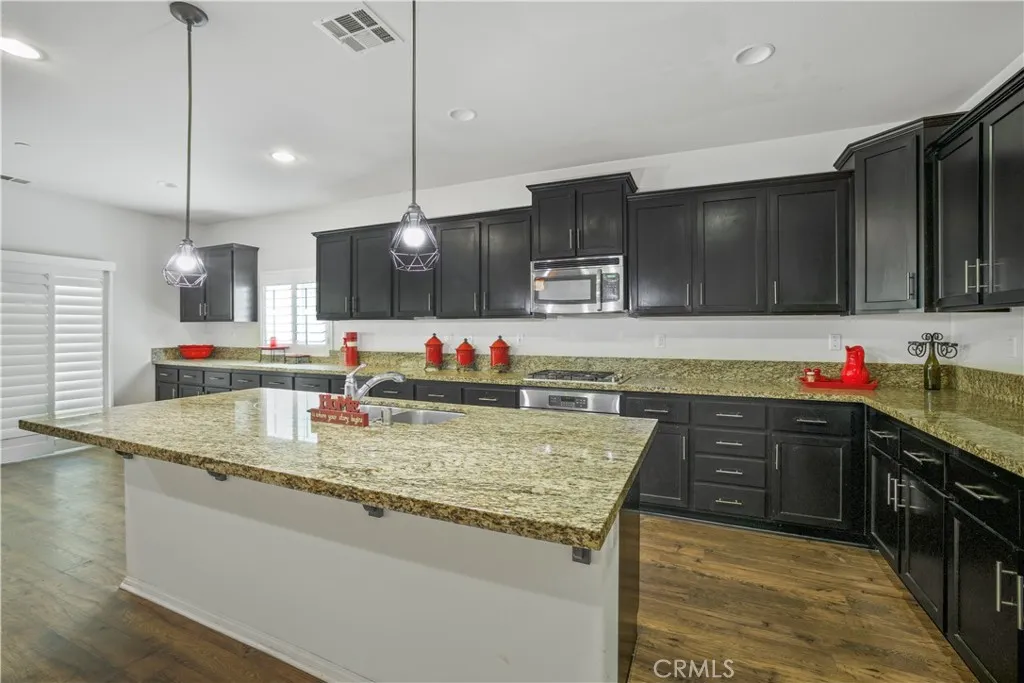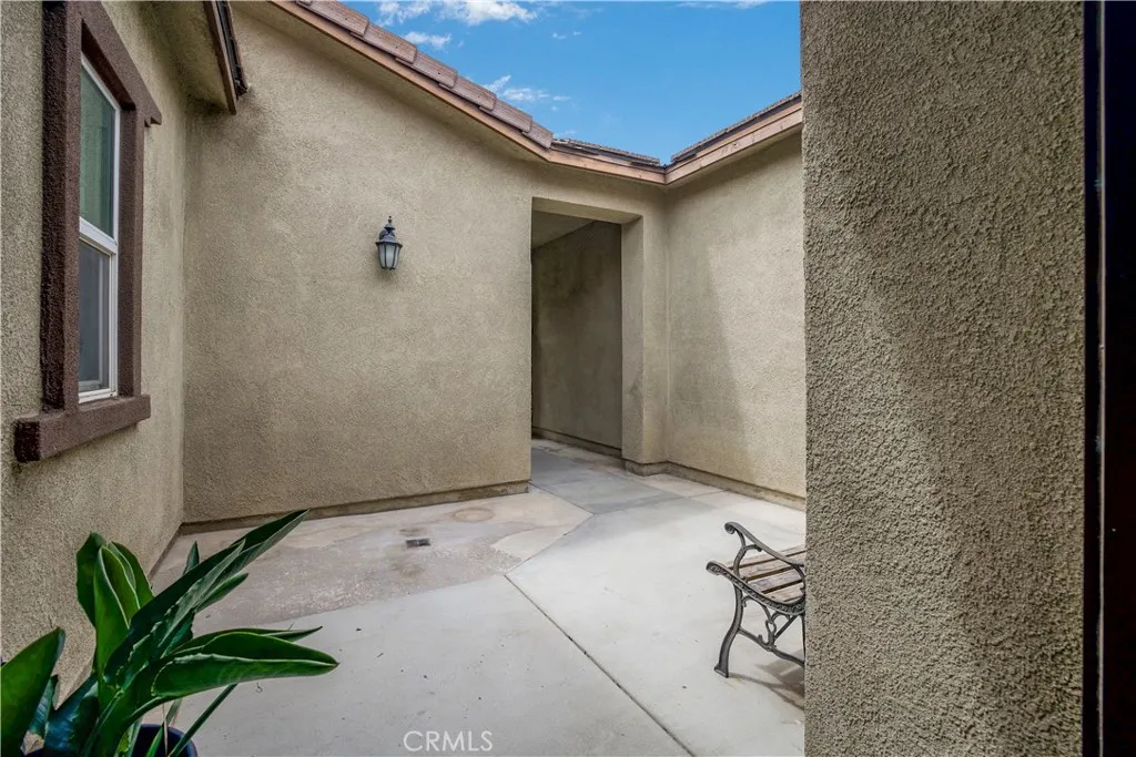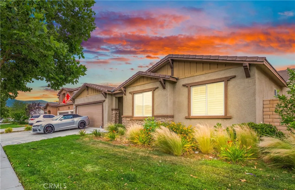 Welcome to this spacious and beautifully designed single-story residence offers 5 bedrooms and 3 full bathrooms, thoughtfully laid out in an open concept floor-plan that blends comfort and functionality. Step through the charming courtyard entry into a bright and inviting interior featuring a formal dining room, a versatile den perfect for a home office, playroom, or guest space, and a generous living area that flows seamlessly into the kitchenideal for both everyday living and entertaining. The kitchen, with plenty of counter space, overlooks the main living space and is perfect for gathering with family and friends. All bathrooms include double sinks, offering convenience, and the primary suite features a large walk-in closet for ample storage. Enjoy the outdoors year-round under the covered patio, perfect for relaxing or hosting gatherings. This home also comes with owned solar panels! Located in the vibrant Rosena Ranch community, residents enjoy resort-style amenities including an Olympic-sized lap pool and spa, splash park, clubhouse, state-of-the-art fitness center, and a picnic area with barbecuesperfect for weekend fun. This home combines style, space, and lifestyle in one of the Inland Empires premier communities!