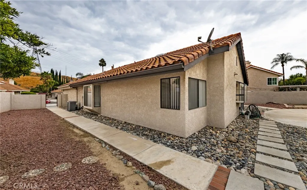 3-bedroom 2-bathroom single-story home in the rolling hills of Reche Canyon. There have been several significant upgrades within the last 3-4 years, including a NEW HVAC system, concrete to extend the width of the driveway, fresh exterior and interior paint, leaf filter gutters, garage paint and epoxy flooring, and about $9K worth of no-maintenance hardscape. Backyard hillside has been cleared of vegetation and fenced, however the property line does extend farther up the hill. Spacious living area with vaulted ceilings, primary bedroom has an en suite bathroom with dual vanities and a separate shower and soaking tub. Indoor laundry room, window blinds throughout, oversized two-car garage. Roof has been maintained, Section I Clearance was issued in 2020. Walking distance to Reche Canyon Elementary School and Prado Park, close to Blue Mountain Trail, and about 3 miles to Loma Linda University Medical Center. Enjoy a rural feel while still being close to shopping, dining, and freeway access.