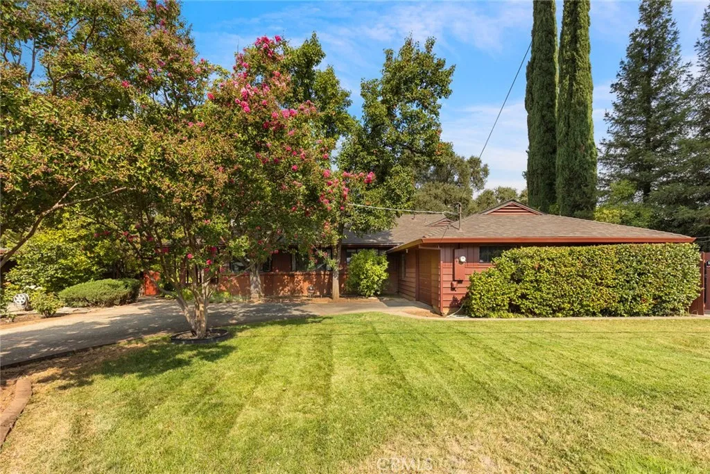 Timeless Chico home on .47 AC. The property is 2 buildable lots with separate APN #s. The home has plenty to offer from Spacious living area to a Greenhouse to a butcher's cold box, perfect for hosting gatherings. Family room had an indoor BBQ, wet bar and loads of storage. huge country kitchen with pantry, island with salad sink, Gas cook top and large oven. This kitchen offers plenty of storage and counter space, a breakfast nook. The yard offers 4000 SQ. FT. Garden area with a greenhouse for your plant starts. The family room is set up for indoor BBQ with wood stove in a one-of-a-kind fireplace. Please look over this property to get a glimpse of 1950s functionality and sustainability. FYI-new roof, new HVAC unit on the roof, new carpet, and many small repairs completed that were noted in the home inspection report and pest report on file. Sewer cam inspection in 2025 with all clear report.