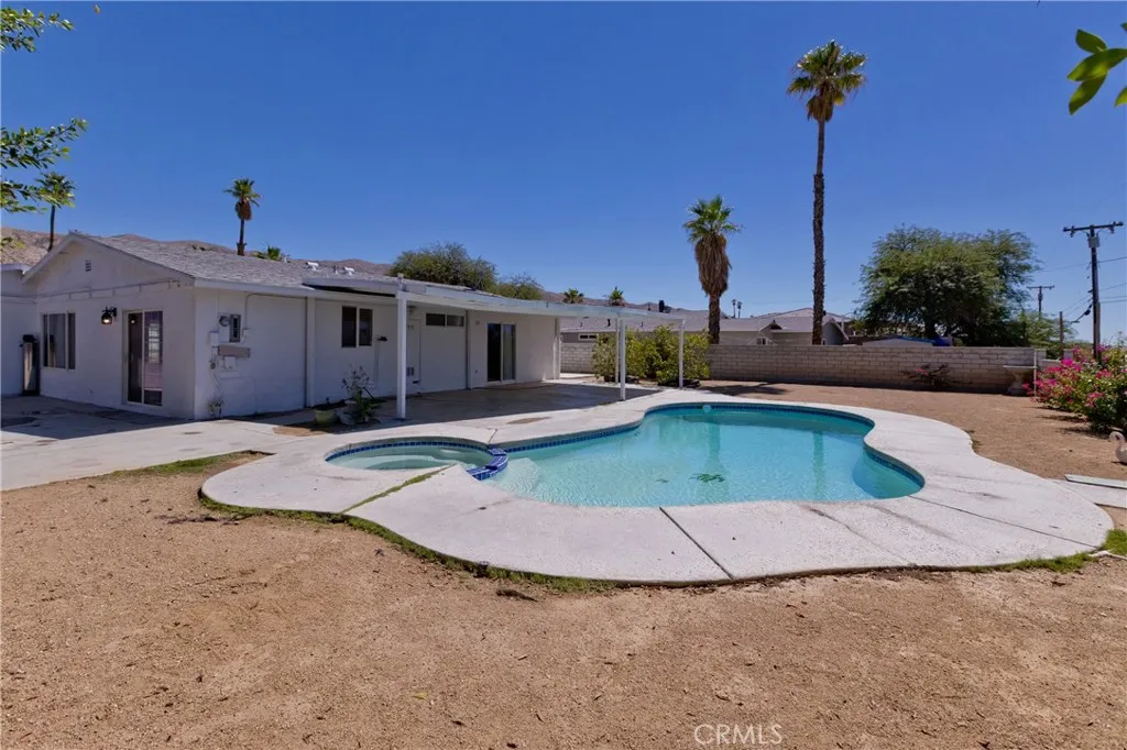 Welcome to your desert oasis that perfectly blends comfort, style, and breathtaking mountain views! Nestled in a serene neighborhood, this beautifully maintained 4 bed 2 bath home is a true gem in the desert waiting for you to make it your own. Step inside to discover a bright, open floor plan and plenty of natural light. The spacious living area flows seamlessly into a contemporary kitchen, making it ideal for both entertaining and everyday living. The backyard is designed for ultimate relaxation and entertainment, featuring a sparkling pool and a luxurious spa. Imagine spending your days lounging by the pool, taking a refreshing dip, or unwinding in the spa under the starry desert sky. The covered patio area is perfect for al fresco dining and enjoying the beautiful desert sunsets. With a large driveway and attached garage, parking is never an issue. Location is everythingjust minutes from the world-famous hot mineral spas of Desert Hot Springs, and a quick drive to the vibrant energy of Palm Springs or the breathtaking trails of Joshua Tree National Park. Whether youre seeking a peaceful primary residence or a lucrative investment property, 66591 Yucca Dr offers the best of Desert Hot Springs living