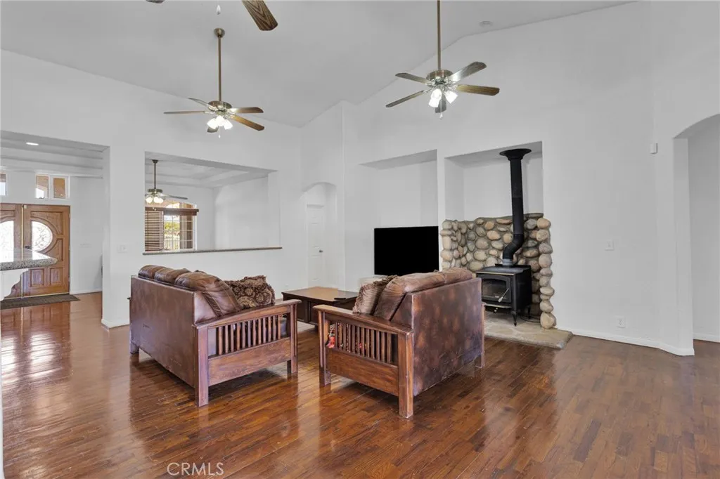 BEAUTIFUL !!!!!! Spacious 5-Bedroom Ranch on Nearly 1 Acre with RV Access & Entertainers Backyard! Built in 2007, this 2,875 sq ft single-story home offers 5 bedrooms, 3 full baths, vaulted ceilings, hardwood floors, a large open kitchen with double ovens, tile roof, and a 3-car garage. The circular driveway flows through a charming front drive-up porch. Enjoy a fully fenced lot with wrought iron and block fencing in front for curb appeal, and wood fencing in back for privacy. Concrete driveway extends to the backyard with RV parking access. Entertain under the permitted wooden gazebo with electrical, built-in gas BBQ, pizza oven, flat stovetop, and storage shed.