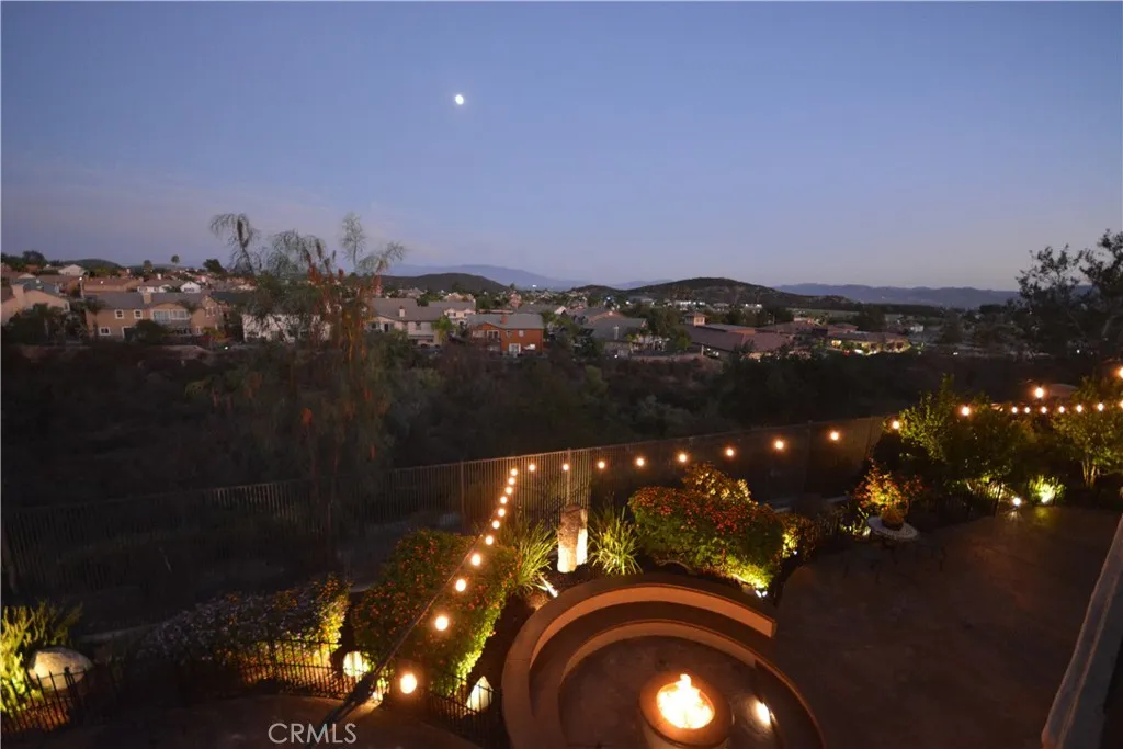 Stunning Panoramic views, views, views! Sparkling heated pool, main floor bedroom, quiet cul de sac location for privacy, No HOA dues, solar and low, low tax rate keep this home affordable! This highly upgraded executive home has all the features buyers request most. Enter through a covered front porch to the formal living room to see that the whole home has new hard wood flooring, new light fixtures, plantation shutters and more. Pass through the formal dining room to the spacious great room at the rear of the home which features a family room space with fireplace, eating area and impressive kitchen with granite counters, stainless appliance package, pantry, center island and absolutely loaded with cabinet and counter space. All of this looking out to the heated saltwater pool, spa, firepit and 180 degree views of all of Temecula, the hills and city lights. Main floor bedroom with its own bath and large laundry/mud room complete the main floor. Second floor features a massive loft/family room, 3 large guest bedrooms and an amazing primary suite with it's own private retreat/bonus room, luxury 5 piece bath, walk-in closet and private balcony/deck to take in the breathtaking views. New A/C and solar keep it cozy and comfortable. Outside, sculpted concrete patio, sunken fire pit, pool, covered dog run, and fruit trees all on a lot that you just can't find anywhere else. Home water softener filtration system, new perimeter fencing, removable locking security pool gate and so much more. Close to parks, top rated schools, shopping, award winning wineries, and with easy freeway a