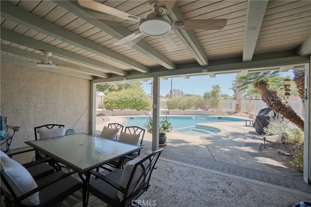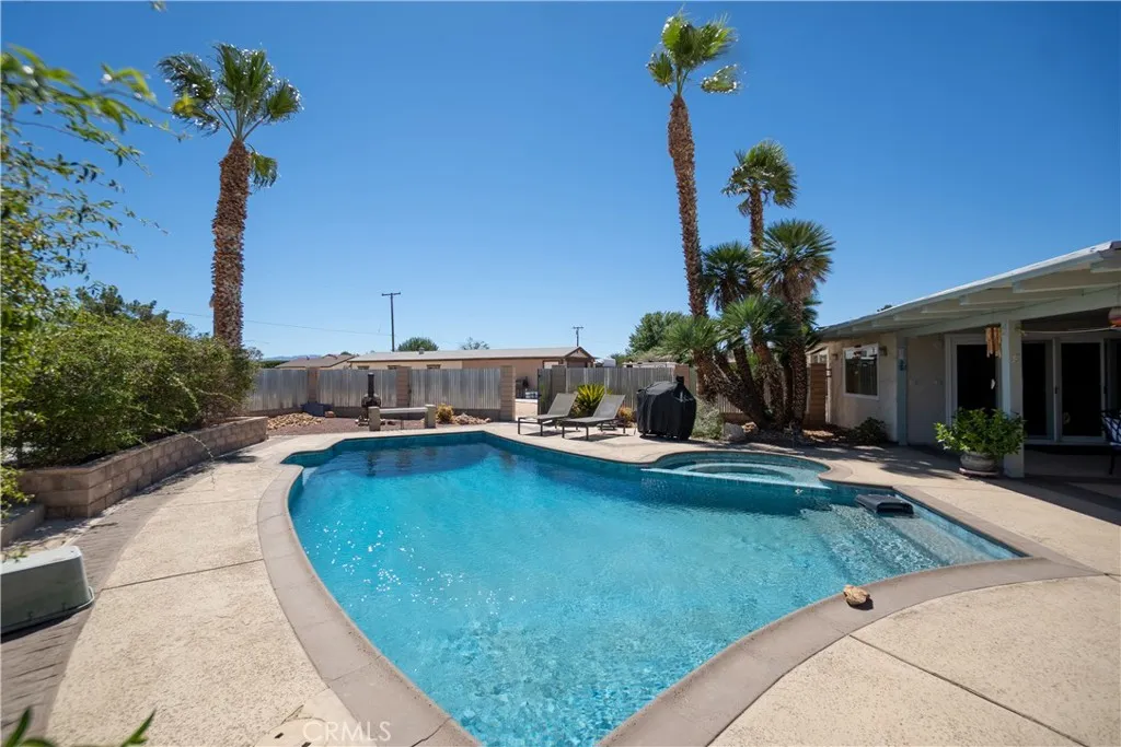 MUST SEE this Stunning Craftsman Home in the heart of Desert Knolls. Eye catching, fenced entrance to your private OASIS. Expansive carpeted living room leading to your personalized patio, overlooking a luxurious haven for socializing and relaxing. YES IT'S A PRIVATELY FENCED PEBBLE TEC POOL AND JACUZZI. This Home features a New Roof, Remodeled Bathrooms, A New Air Conditioning & Heating Unit and an Alarm System. SKY LIGHTS in the dinning room and hallway, A WHOLE HOUSE FAN, and beautifully painted CONCRETE. Come and see for yourself, you will be enticed. Please make an appointment with the selling agent.