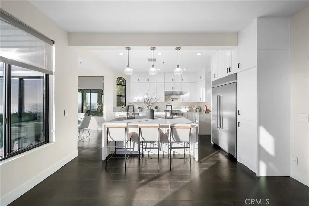 Welcome to a breathtaking blend of luxury, style, and amazing ocean views in this fully remodeled coastal gem. With over 4,000 square feet of meticulously designed living space, this 4-bedroom, 4.5-bath home sets a new standard for modern elegance. Step inside and be instantly captivated by the gorgeous ocean views that fill the main living areas with a serene, natural beauty. The heart of the home, a chefs kitchen is a culinary dream equipped with state-of-the-art appliances, custom finishes, sleek quartz countertops, flowing seamlessly into a formal dining area and a cozy family room with a sleek fireplace which opens to an expansive balcony, offering the perfect setting for sunset dinners or morning coffee with uninterrupted views of the ocean. From the moment you step through the grand entrance, you're greeted by stunning open-concept interiors, flooded with natural light. Every detail in this residence has been meticulously crafted, blending sophistication with functionality. The main level features all 4 bedrooms, including 2 with private bathrooms for the ultimate in comfort, while two others share a beautifully appointed bathroom. The primary suite is a private sanctuary, complete with a spa-inspired bath and custom walk-in closet. The primary suite is a true retreat, complete with a spa-like bathroom featuring a freestanding tub, dual vanities, and a custom walk-in closet. Each additional bedroom boasts unique design touches, ample storage, and high-end finishes, making this home as functional as it is beautiful. Downstairs, discover a host of luxury amenities, inc