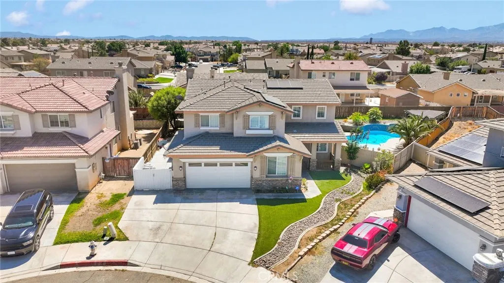 Welcome to this spacious 5-bedroom, 3-bathroom home in the heart of Adelanto! Featuring a bonus room perfect for an office and a loft upstairs, this home offers space for the whole family. Enjoy peace of mind with two brand-new AC units, a new swamp cooler, pool pump, ceiling fans, and a solar system that means no utility bill! The first floor includes two bedrooms and a full bath, along with a large living and dining area plus an open kitchen filled with natural light. Upstairs, youll find additional bedrooms and a loft for extra living space. Step outside to a backyard made for entertaining with a sparkling pool, spa, aluminum patio cover, and a grassy area for kids and pets. Complete with an attached 2-car garage, this home truly has it all!