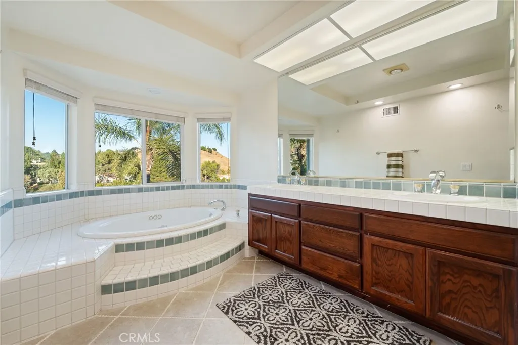 Best value home within prestigious gated community! Welcome to The Heights, a wonderful family neighborhood within Porter Ranch. This bright and cheerful home boasts many desired features including an entertainers' formal living and dining room open to an intimate backyard with beautiful mountain views. If you love cooking, you'll enjoy this well-lit, large kitchen with ample cabinets, a large pantry with a breakfast area overlooking the backyard. For gatherings and movie-time, the great room features a cozy fireplace enriched with top quality wood shelving and stonework. The second-floor features two master bedrooms with the main master having an ensuite large shower and a luxury jacuzzi bathtub overlooking beautiful hillside views; for privacy, the second master suite is located on the opposite side with a walk-in closet and serene hillside neighborhood views; and two additional bedrooms share a spacious bathroom with double sinks. Upgrades include Brazilian hardwood floors, backside windows and sliding door, low maintenance turf grass with drip sprinklers, a tankless water heater, central vacuum cleaner, and there are many other elegant details throughout. This lovely community is surrounded by stunning mountain views and is ideal for those who love nature and wildlife. For outdoor enthusiasts, there are many serene parks, hiking trails, walking & biking paths, basketball, tennis, and a golfers' retreat is just minutes away at Porter Valley Country Club. It's also a short distance to popular shopping, including The Vineyard, Porter Ranch Town Center, Northridge Fashion C