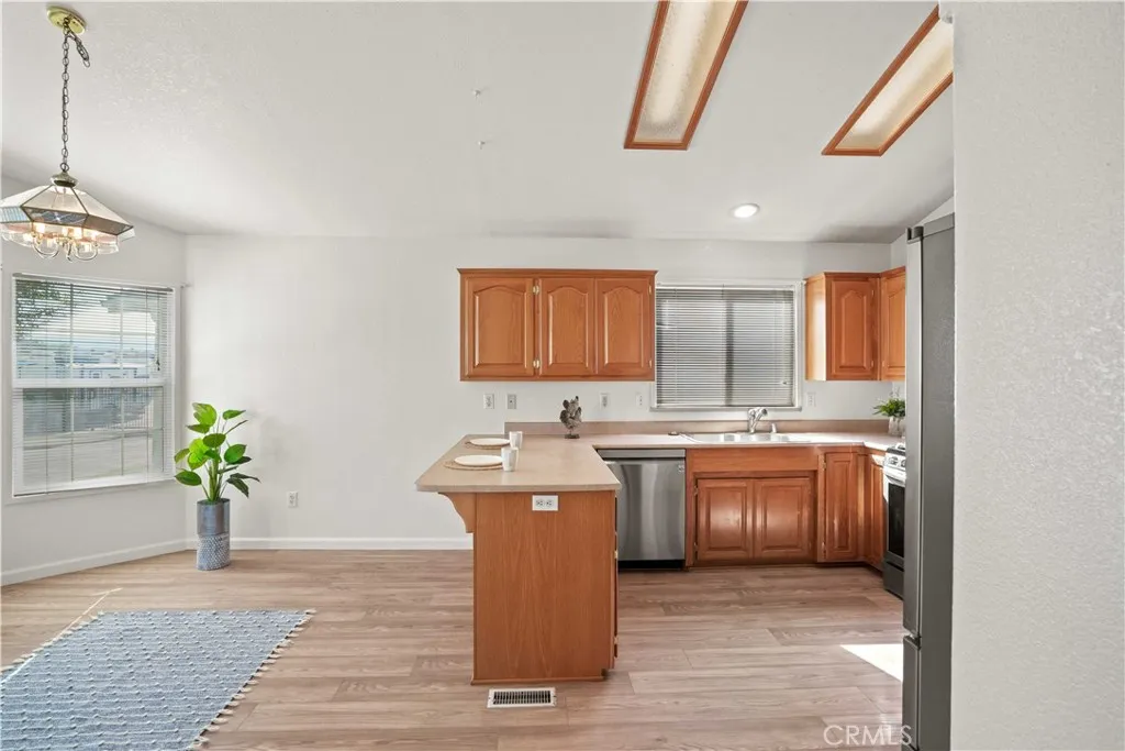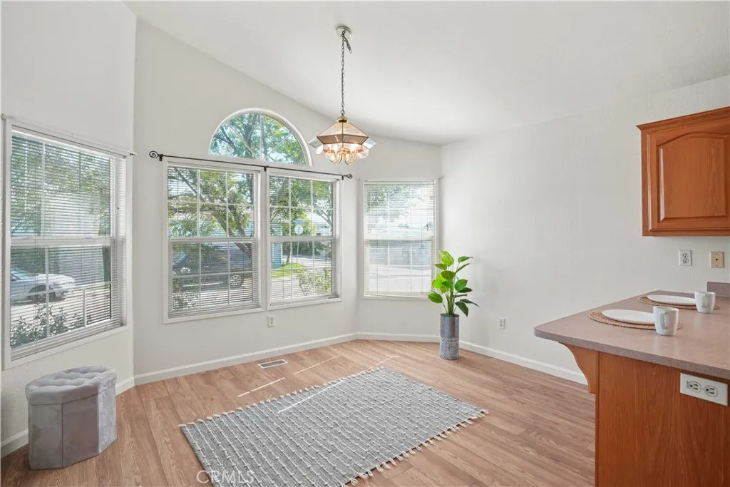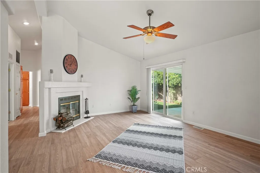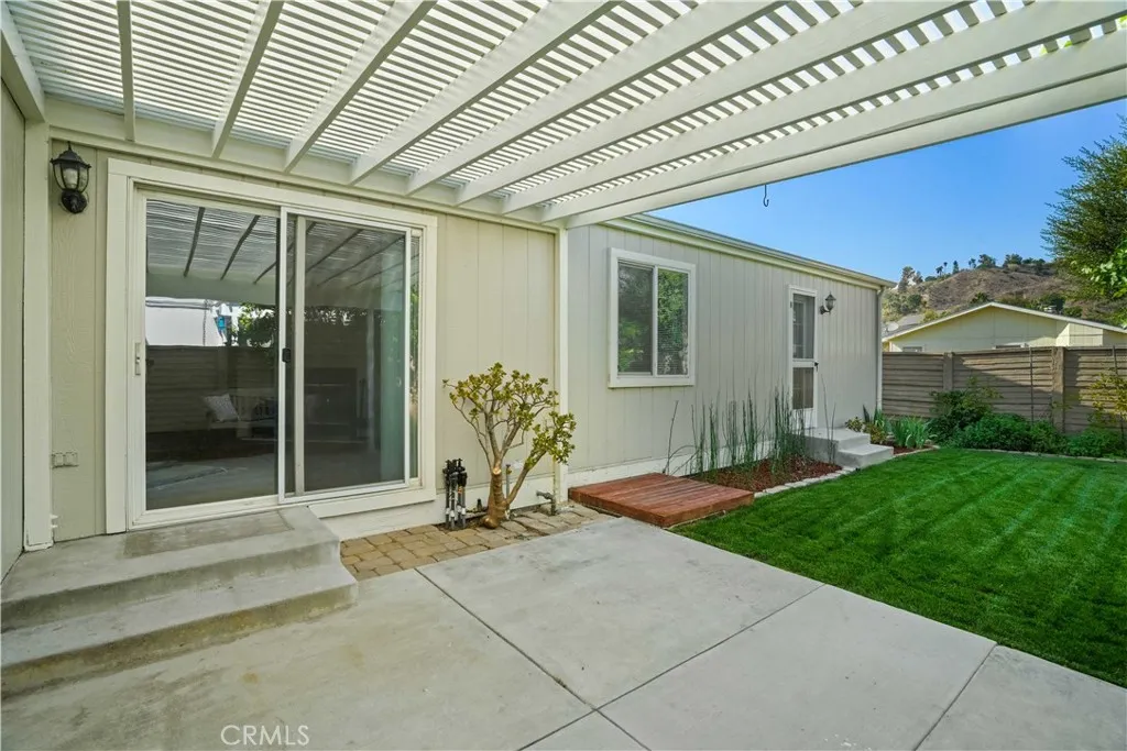 Back on the Market. Buyer could not perform. With one of the lowest land lease amounts in the community, this home is not only stylish and functional but also a fantastic value. Welcome to this charming 3-bedroom, 2-bathroom home spanning 1,482 square feet, where modern upgrades meet everyday comfort! The home features recently serviced A/C, heater system, and air ducts and has been thoughtfully updated throughout. Step into a bright and inviting interior with newer laminate plank flooring in the main areas and upgraded carpet in the bedroomsboth installed approximately one year ago. The kitchen showcases beautifully refinished cabinets and upgraded stainless steel appliances, including a built-in microwave and refrigerator. Enjoy meals in the bay window dining nook, offering a cozy and light-filled space. The home has also been fully re-plumbed with copper piping, and the guest bathroom has been completely remodeled with fresh, modern finishes. The open-concept living room features a warm and welcoming fireplace, creating an ideal space for gathering. Ceiling fans in the living room and primary bedroom provide additional comfort. The primary suite includes an en suite bathroom and an elegant French door leading directly to the backyard, while the front entrance is enhanced with a stylish glass storm door. Step outside into a private backyard retreat featuring a patio slab with a cover, a charming couch swing, mature trees, garden planters, and a grassy area complemented by a tranquil horsetail garden. A direct access two-car garage completes the package with ample parking