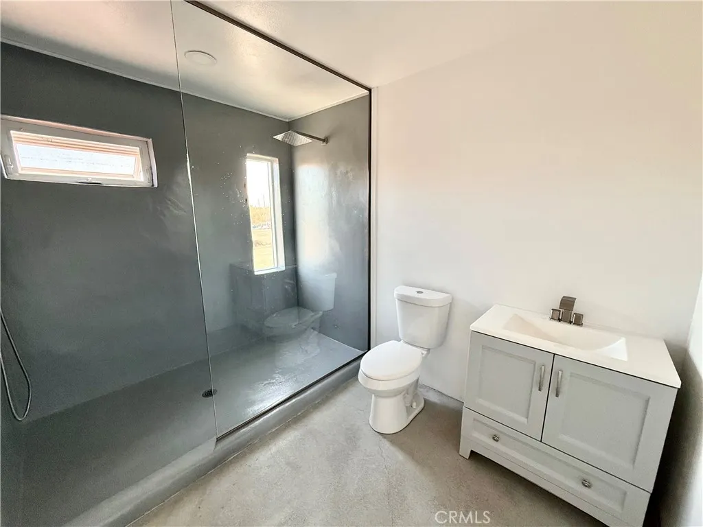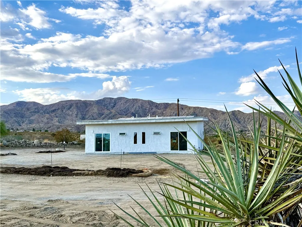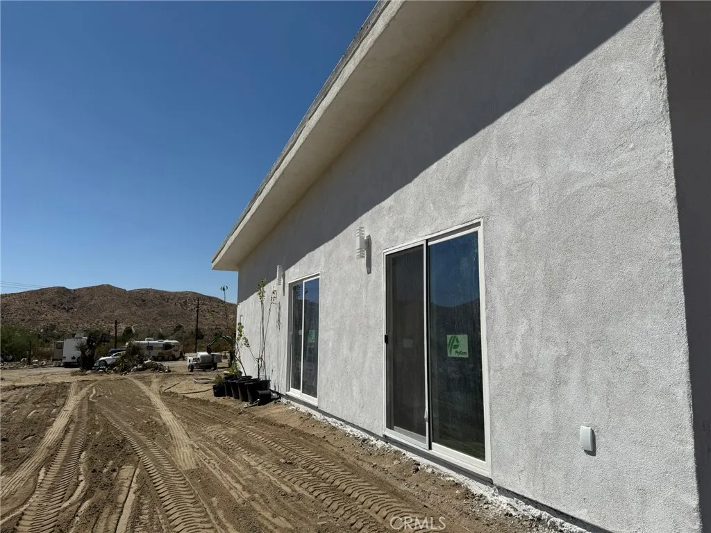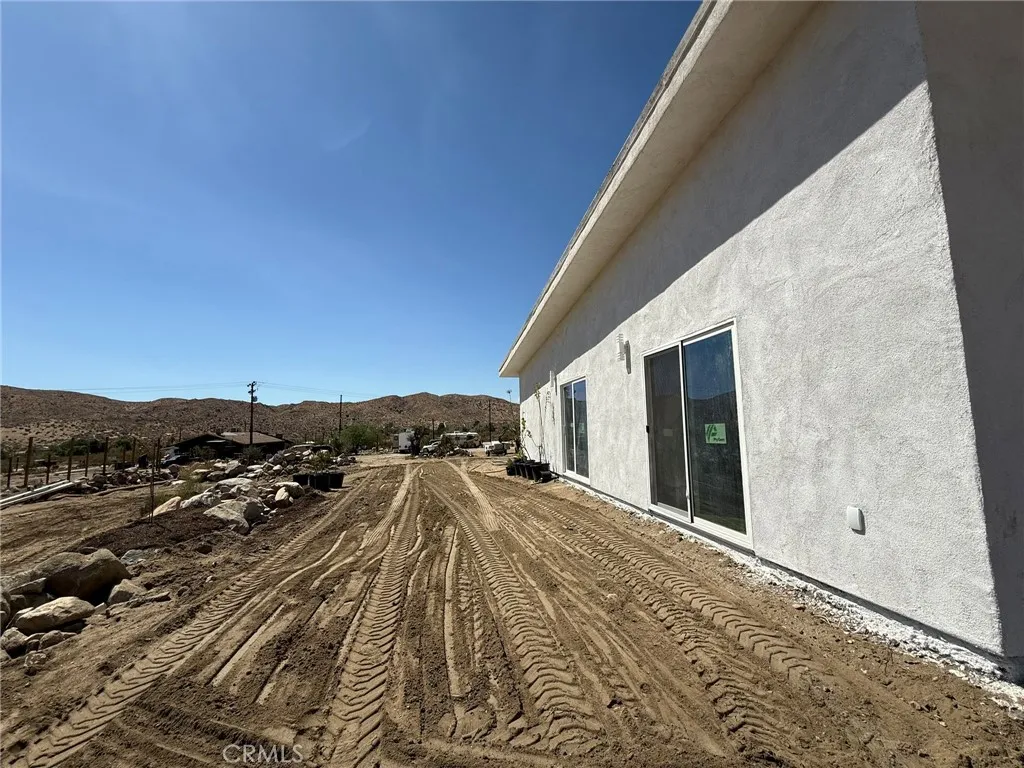 Experience the perfect blend of modern living and natural beauty with this newly constructed 1,600 sq. ft. smart home, ideally set on a spacious 1.75-acre lot in the tranquil High Desert near Joshua Tree. Currently receiving its finishing touches and nearly ready for a Certificate of Occupancy, this home offers a rare opportunity to own a premium desert retreat. Thoughtfully designed for comfort, sustainability, and style, the home features two primary bedrooms, polished concrete floors throughout, and a bright open-concept living space with quartz countertops and stainless steel appliances. Climate control is made easy with individual mini-split heating and air units with ceiling cassettes, while paid solar and a car charging port ensure eco-friendly living. Enjoy breathtaking desert views from the expansive lot, with plenty of room to create your outdoor sanctuary. A storage shed is included for added convenience. Whether as a full-time residence, vacation home, or investment property, this new build is the perfect blend of modern technology and desert serenity.
