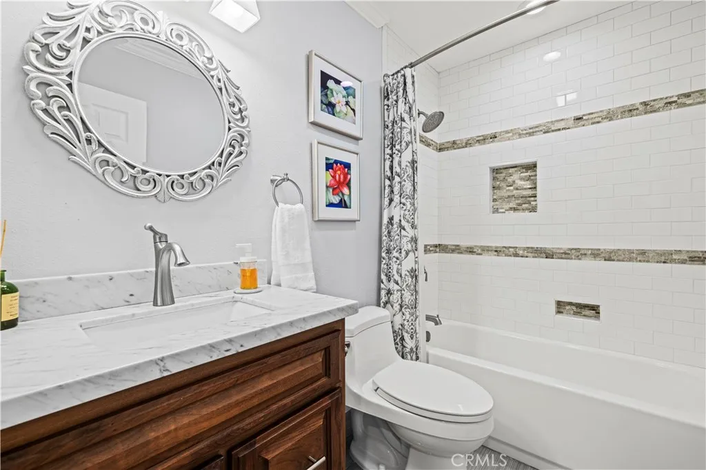 Welcome to a beautifully remodeled townhome. It's all done and ready for you to move in! Nestled within the gated Scenic Hills community, this stunning 3-bedroom, 2-bathroom residence offers 1,469 square feet of one story living space. Feels like every inch of this home has been thoughtfully upgraded to create a modern, inviting atmosphere. The heart of the home is the light-filled kitchen, seamlessly opened to the dining room. It boasts special features such as pendant lighting over a generous peninsula island, energy-efficient high-end appliances, a striking range hood, quartz countertops, and custom cabinets with bead-board backing and convenient slide-out drawers. Smooth ceilings with recessed lighting, 6-panel interior doors, and engineered wood floors enhance the home's elegance, complemented by crown molding throughout. The roomy living area features a fireplace with a mantle, stone surround, and slate hearth. Both bathrooms are upgraded with tile bath/shower, new fixtures, and custom walnut vanities. The primary bath impresses with dual sinks and a walk-in shower with a rain showerhead. The home has plenty of storage in closets, attic storage, and a two car attached garage. Enjoy vibrant community amenities including a spacious association pool, spa, picnic area, and tennis. The clubhouse offers a gym, sauna, and library, perfect for relaxation and entertainment. Experience the best of California living in this exceptional townhome. Hope you take the time to watch the video tour. Home is adjacent to the 9 hole HOA golf!