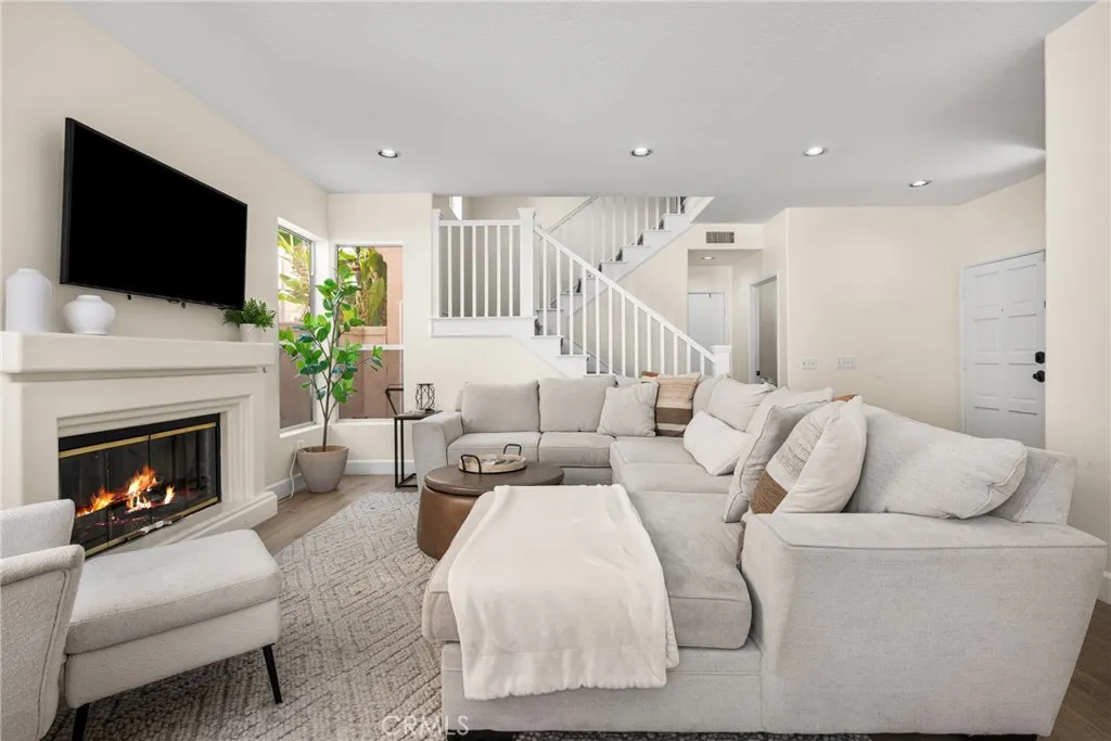 Welcome to 67 Blazewood, Foothill Ranch where comfort meets convenience in one of Orange Countys most family-friendly neighborhoods. This charming 4-bedroom, 3-bathroom single-family home offers 2,083 sq. ft. of thoughtfully designed living space on a nearly 4,000 sq. ft. lot. Step inside to find a bright, open-concept floor plan filled with natural light. The spacious living area features a cozy fireplace and brand-new vinyl flooring throughout the downstairs, creating a warm and inviting atmosphere. The kitchen is equipped with stainless steel appliances, generous cabinet space, and a glass atrium that brings in plenty of light for entertaining. Upstairs, a large loft provides flexibility; use it as a playroom, home office, or easily convert it into a 5th bedroom. The primary suite is your private retreat, complete with a spa-like bathroom featuring a soaking tub, walk-in closet, and plenty of space to unwind. A charming balcony off the front bedroom adds even more character and indoor-outdoor living space. Fully upgraded for modern living: smart eco-friendly thermostat, Ring doorbell, smart lock, new AC compressor, new bathroom vanity, upgraded fixtures, freshly painted interior and cabinets, turf in both front and backyard, and even a EV car charger. Truly move-in ready! Outside, the spacious backyard provides planter boxes, and an included private gazebo are ideal for kids, pets, and weekend BBQs. The attached 2-car garage and driveway offer plenty of parking and storage. Located in a tight-knit Foothill Ranch community, youll love the walkability to Foothill Ranch El