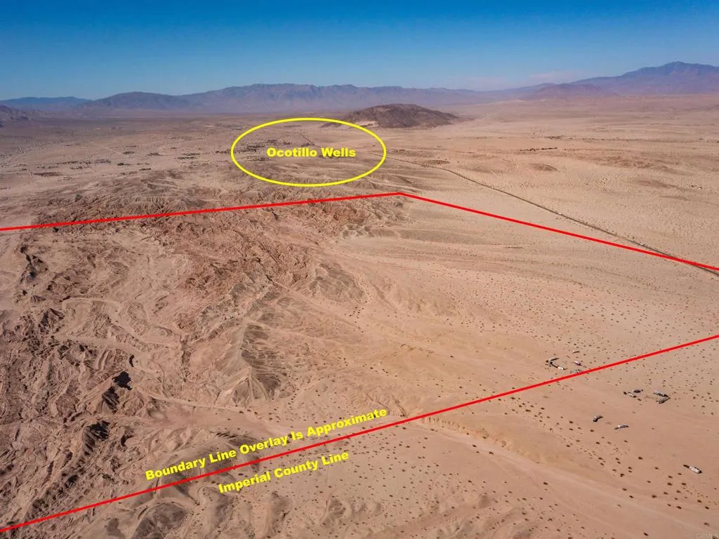 Discover the ultimate desert playground on this expansive 637+/- acre property in Ocotillo Wells, where diverse terrain meets a perfect winter climate. Ideally situated contiguous with public land and the Ocotillo Wells State Vehicular Recreation Area, this vast one-mile-by-one-mile property offers endless opportunities for off-road enthusiasts. Imagine exploring a landscape designed for motorcycles, ATVs, buggies, and custom-built racetracks. Whether you crave the thrill of off-road racing, shooting sports, or tranquil hiking and camping, this property is your canvas for outdoor adventures. With direct access to Highway 78, this desert oasis is just minutes from Ocotillo Wells proper, the epicenter of San Diego Countys off-road motorsports scene, and a short drive to Borrego Springs for dining, shopping, and local events. The propertys varied topography includes open desert, rolling terrain, spectacular geological formations, and multiple locations suitable for creating a private compound. Endless, breathtaking views from every vantage capture the heart & essence of the treasured Anza-Borrego State Park & surrounding desert scapes. Its an ideal setting for hosting exclusive gatherings, private events, film productions, and more. Featuring a private water well and a history of use for riding, shooting, weekend warrior-ing, and events, this parcel is well-equipped for diverse recreational ventures. Whether youre looking to develop a private retreat, an outdoor venue, or simply a personal playground, the possibilities here are as vast as the open desert skies & sands.