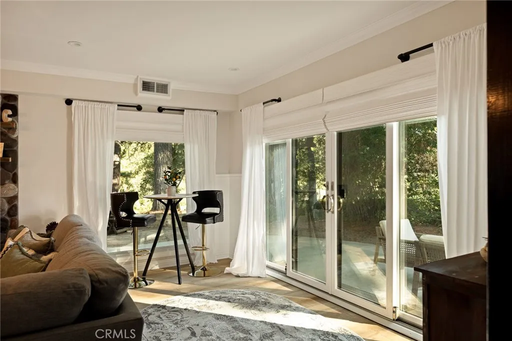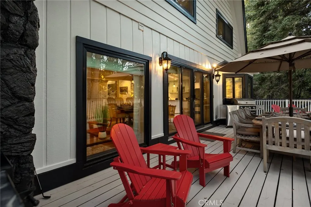 Where Mountain Magic Meets Modern Luxury Welcome to an enchanting retreat tucked within the prestigious Lake Arrowhead Country Club, gracefully perched on the signature 16th tee box. Here, luxury living is kissed by the whisper of towering pines, the sparkle of mountain air, and the timeless allure of Lake Arrowheadwhere your lake rights invite you to endless days of adventure on shimmering waters. Originally reimagined in 2021 and remodeled again in 2025, this residence has been elevated with a collection of exquisite upgrades. Inside, new wood flooring flows throughout the home, while the master suite was transformed with plush new carpet, an enlarged walk-in closet, and a fully remodeled bedroom retreat. The kitchen shines with custom-painted cabinets, custom wainscoting, a gleaming new quartzite island countertop, and dazzling designer chandeliers in both the living and dining rooms. Fresh interior and exterior paint, along with striking new iron-and-glass entry doors, lend the home a crisp and refined elegance. In the living room and master suite, newly crafted stone fireplaces create warm, inviting focal points, and a whole-home water filtration system enhances everyday living with mountain-pure freshness. The main level embraces open-concept living, seamlessly blending living and entertaining spaces. At its heart is a chefs dream kitchen featuring GE Caf appliances and a magnificent Italian ILVE six-burner range. Three distinct gathering areasincluding the celebrated Presidential Billiards Room and Cocktail Loungeoffer versatile settings for everything from cozy fire