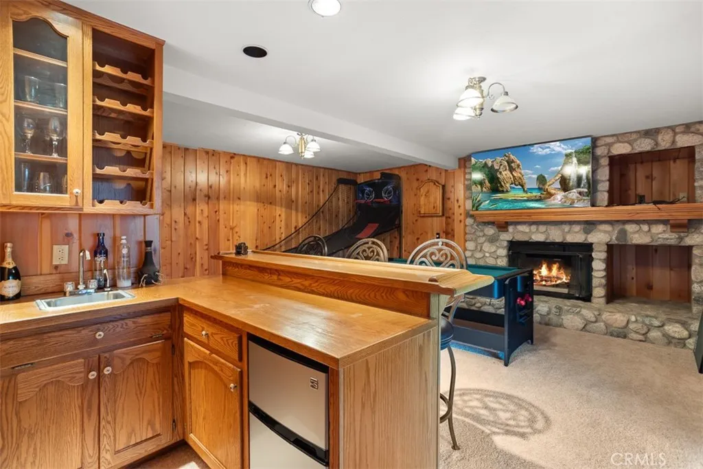 Discover your mountain sanctuary in this spacious and inviting home on a quiet street with Lake Rights! Beautiful forest views and a large, treed lot make the perfect retreat. Step into the entry with a stunning Stained-Glass window that brings ethereal light into the home. The wood Cathedral Ceiling in the Living Room above the massive brick fireplace is the essence of mountain ambiance. On the main floor is everything you need a spacious private Primary Bedroom with an en-suite bath, walk-in closet and beautiful forest views, Living Room and Dining Room with beautiful views, a Kitchen opening up to the living area, a Laundry and Powder Room. The large windows bring in natures best with views of towering pines and vibrant oaks. The large Deck outside the Dining Room offers plenty of space for the whole gang for Al Fresco dining, listening to the birds, the whispering of the pines or watching the wildlife. Upstairs are three spacious Bedrooms with vaulted wood ceilings and a full Bath for your guests. Downstairs is another Bedroom, another full Bath and a great Game Room with River Rock Fireplace, Bar, Pool/Ping Pong Table and Basketball Shot game! Right off the Game Room is a large, covered deck for relaxation, quiet conversation and convenient access to the dog run below. There is level entry into the two-car garage and level parking off a paved and maintained road that is plowed by the County. Just a few landscape stairs to the front door, this turn-key furnished home is move-in ready! Easy commute down the hill. Enjoy all the mountain has to offer and make your Lake Ar