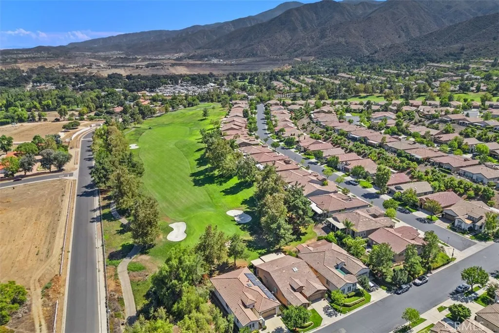 GOLF COURSE VIEWS OWNED SOLAR ONLY ONE NEIGHBOR PERFECTLY POSITIONED ON THE 2ND GREEN YOUR RESORT LIFESTYLE AWAITS! Located in the highly sought-after 55+ gated community of Trilogy at Glen Ivy, this beautifully maintained single-story home sits on the 2nd green of the Glen Ivy Golf Course, offering stunning views from the main living areas, breakfast nook, and primary suite. With a neighbor on only one side, you'll enjoy added privacy in a tranquil setting. Inside, a bright, open layout is filled with natural light. To the right, the formal dining room features a dual-sided fireplace shared with the spacious family roomperfect for relaxing or entertaining. To the left, the guest bedroom and full bathroom are located at the front of the home for maximum privacy. The open-concept kitchen includes a pantry and a breakfast nook overlooking the green, along with an electric range and a gas connection available if a gas range is preferred. A bonus counter space near the laundry room is ideal for a coffee bar or hobby area. The den, positioned between the bedrooms, makes a perfect home office or optional third bedroom. The spacious primary suite at the back of the home enjoys panoramic golf course views and direct patio access. The en-suite bath offers a walk-in shower, dual sinks, a private water closet, linen storage, and a large walk-in closet. Additional highlights include an interior laundry room, attached two-car garage, and owned solar, providing energy efficiency and long-term savings. A golf cart is available for purchase, making it easy to cruise to the clubhouse an