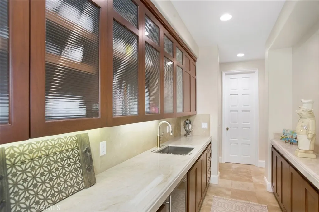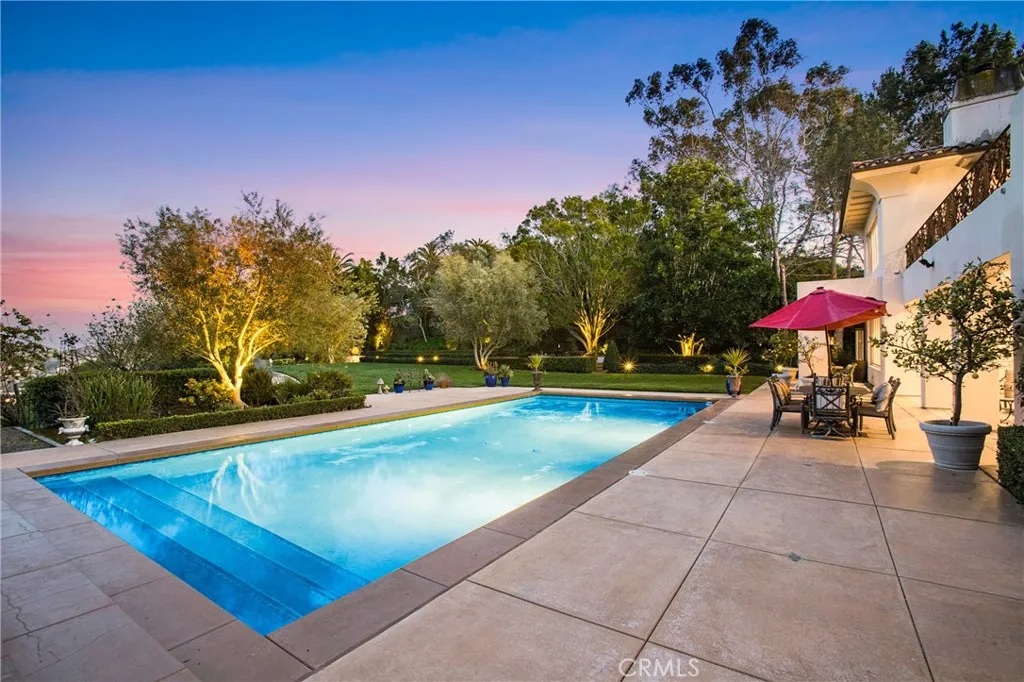 Truly, a stunning gated estate located in the prestigious guard-gated community of Bear Brand Ranch" in Laguna Niguel! This meticulously maintained custom residence is situated on a 1.3-acre site & contains approximately 7700 ft. of living area consisting of 6 bedrooms, 8 bathrooms. Enter the residence through a stunning entry foyer, complete with chandelier, bespoke ceiling & skylight! The spacious gourmet kitchen with center island boasts its own breakfast area with two built-in desk areas, two ovens, dishwasher, built-in refrigerator/freezer, walk in pantry as well as a butlers kitchen area, simply perfect for entertainment preparations! Additionally, gracious separate formal living & dining rooms with cathedral ceilings, a library/office with dual entry & classic custom cabinetry & extremely spacious, light & bright family room with views over the pool & grounds contiguous to a custom bar. A main floor ensuite bedroom, multiple staircases, 2 main floor powder baths. The Primary bedroom suite offers both peace & privacy with fireplace, custom cabinetry, coffee bar area with refrigerator & a fabulous & spacious walk-in closet! A truly special Primary bath suite offers marble countertops, double vanities, Jacuzzi type tub, spacious dual entry walk-in shower, & opens to a balcony offering incredible forever views of the valleys & mountains! This custom residence includes a separate Office/ensuite bedroom with dual access via separate exterior staircase & from the second floor of the residence (an ideal set up for a nanny or a guest suite!). Additional features of this outst