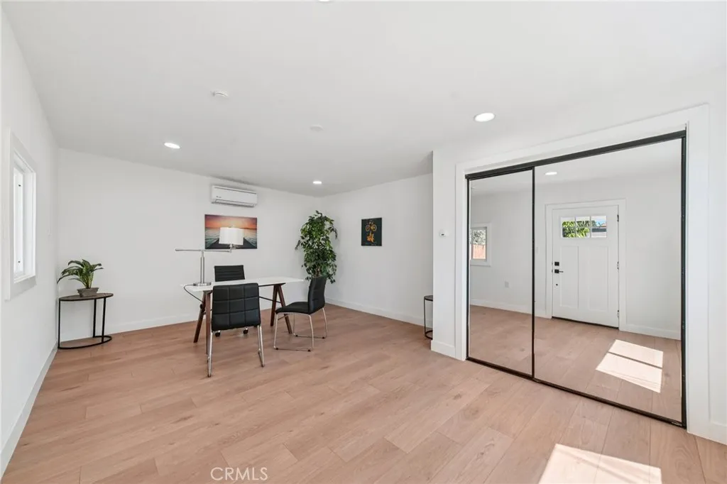 Beautifully Updated Home with a Detached Bonus Room in Prime Santa Ana. Welcome to this beautifully renovated single-story home that blends modern style with thoughtful, high-quality upgrades throughout. This 3-bedroom, 2-bathroom residence features an open-concept kitchen with quartz countertops, custom backsplash, and stainless steel appliances, complemented by dual-pane windows, waterproof laminate flooring, recessed lighting, and matte black fixtures. Both bathrooms are completely refreshed, with no detail overlooked, combining style and functionality. Major system upgrades provide peace of mind, including a brand-new roof, 200-amp electrical panel, central HVAC with new ducting, and a new gas line. Outdoor living is enhanced with a new covered patio, front and back concrete pavers, fresh landscaping with automated sprinklers, and new fencing on both sides of the property for added privacy. The finished garage includes drywall, epoxy flooring, a new garage door, and automatic opener. A detached bonus room with new siding, windows, roof, concrete, and a mini-split system provides versatile space for a home office, gym, or studio. Located near Riverview Golf Course and Santa Ana College, with quick access to local shops, restaurants, and more.