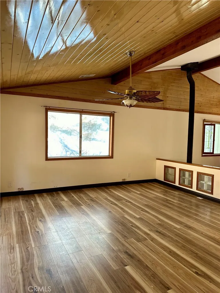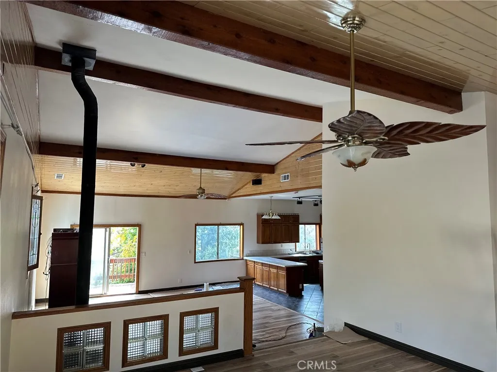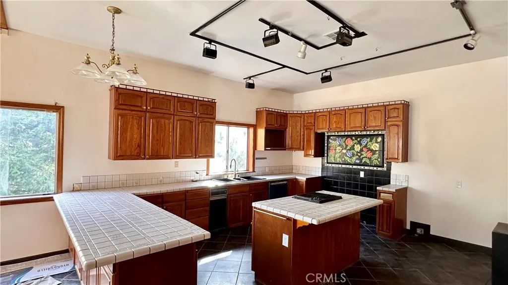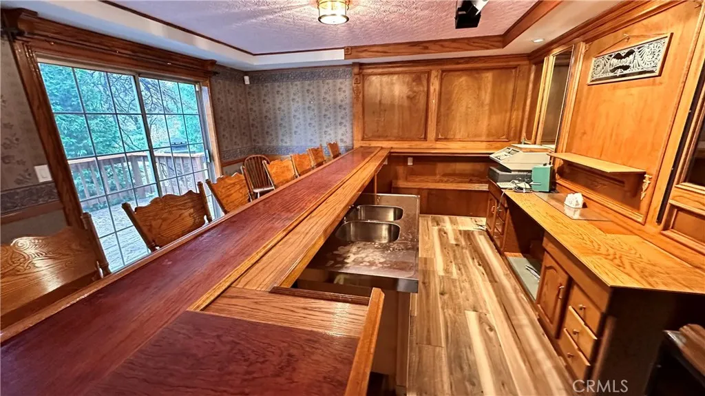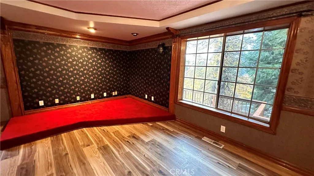 AWESOME!!! over 2900 SQFT LIVING SPACE!! This property presents an excellent investment opportunity, ideal as a secondary residence, weekend retreat, or Airbnb rental, especially for the upcoming holiday season. Conveniently located near Lake Gregory Community in a thriving area, this property offers easy weekend escapes without extensive travel. Immerse yourself in the picturesque ambiance of the tranquil pine forests of Crestline, CA. This charming cabin provides a scenic retreat in the heart of nature, near Crestline's shops, restaurants, and recreational opportunities, including Gregory Lake, just a 15-minute walk away. COMPLETELY REMODELED!! This property features a sprawling porch, perfect for enjoying the mountain air. The interior boasts exposed wooden accents, creating a warm atmosphere. The living room features a fireplace and large windows with stunning woodsy views. The chef's kitchen offers ample counter space and rich wooden cabinetry, a dining area provides a space to gather, enjoying the outdoors through expansive windows. Downstairs, the bedrooms offer comfort with carpets and views of the forest. Bathrooms feature gold fixtures. The home includes three spacious bedrooms, an office room suitable as a fourth bedroom with wood cabinets, and three and a half bathrooms, offering ample space and storage. The lowest level features a custom wooden bar, seating eight, ALL NEW APPLIANCES included. The property comfortably accommodates thirteen guests and includes a two-car garage. Recent upgrades include new laminate flooring, new carpeting in the bedrooms, a new ro