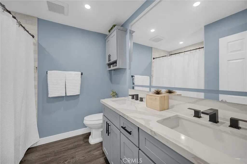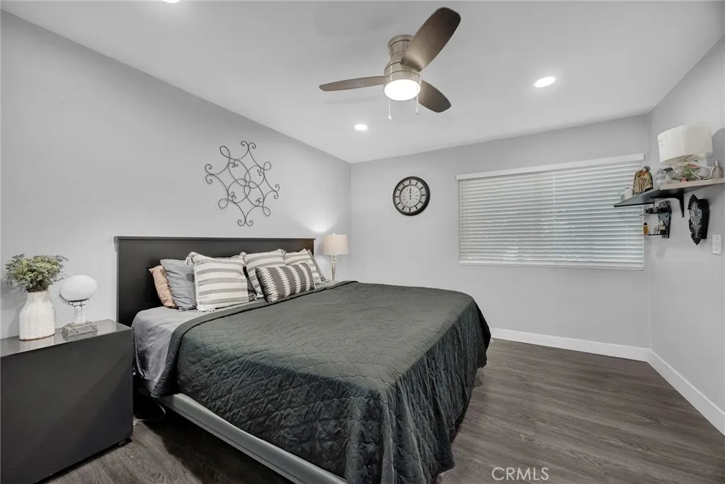 Welcome to South Coast Villas, a beautiful, gated community in the heart of Santa Ana! This Turnkey lower-level Condo features two spacious bedrooms, and one fully remodeled bathroom, perfectly blending comfort, style, and functionality. Thoughtfully updated throughout, this perfect home showcases recessed lighting, new ceiling fans, modern finishes, and wood flooring, making it completely Move-In Ready! Enjoy an open and inviting floor plan that seamlessly connects the living, dining, and kitchen areas, creating an ideal space for both relaxing and entertaining. The beautifully upgraded kitchen is a highlight, featuring stainless steel appliances, a sleek range hood, quartz countertops and updated cabinetry...perfect for both everyday cooking and entertaining. The private patio offers a perfect spot for morning coffee or evening unwinding, with easy access to lush community grounds. Located in a highly desirable area, this gorgeous condo is just minutes from South Coast Plaza, Segerstrom Center for the Arts, World-Class Dining, Shopping, and convenient freeway access for easy commuting throughout Orange County. Residents of South Coast Villas enjoy an impressive list of HOA Amenities including sparkling swimming pools, a soothing jacuzzi, an amazing gym, play area, EV Charging Stations, and the peace of mind of a secured gated community. The HOA also covers Water, Gas & Trash Services, adding exceptional value and convenience! Whether you're a First-Time buyer, downsizing, or seeking an investment property, this beautifully updated condo offers the perfect combination of l