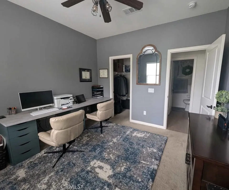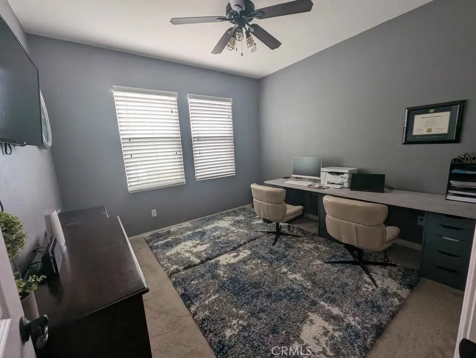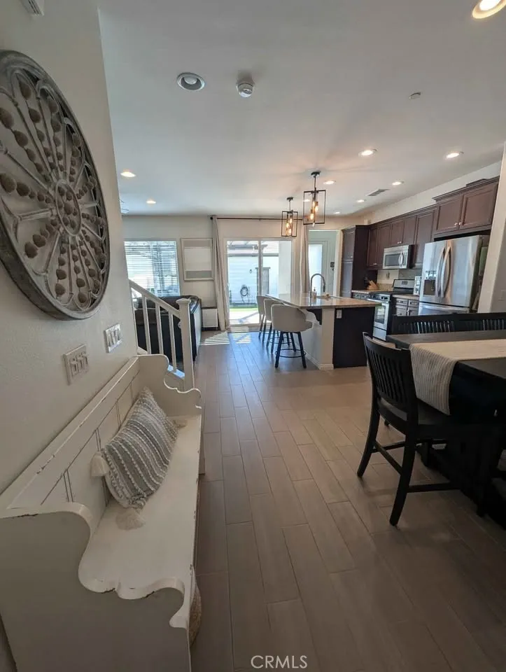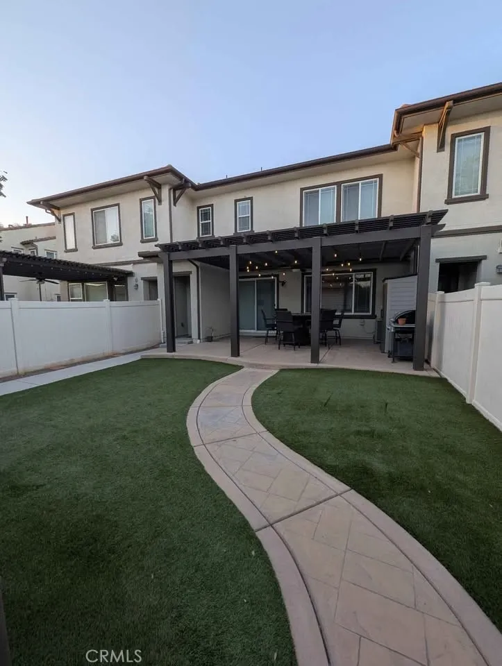 Welcome to a home designed for effortless living and entertaining! Enter through the covered front patio with its cooling ceiling fan and neighborhood view. The ground floor offers a flexible bedroom/office near a convenient 3/4 bath. The heart of the home is the open-concept living area, where the kitchen, dining, and family room flow seamlessly. Look for the hidden storage behind the swiveling bookcase in the family room! A highlight of the home is the free-flowing access to the backyard, through a sliding glass or swinging door, making indoor/outdoor gatherings a breeze. The low-maintenance backyard features an aluminum patio cover with a ceiling fan, attractive stone-textured stamped concrete, and artificial turf. A 2-car garage is situated on the south side. The upper level features the main bedroom suite with its oversized closet and backyard view, two secondary bedrooms, two full bathrooms, and a dedicated laundry room. Enjoy resort-style living in College Park! This covers access to incredible amenities including pools, spa, outdoor BBQ areas, clubhouse, and fitness center that is open 24/7. Conveniently located near top performing schools, shopping, dining, and with easy access to the 71, 91, and 60 freeways. Enjoy the ultimate in low-maintenance living combined with amazing community perks.