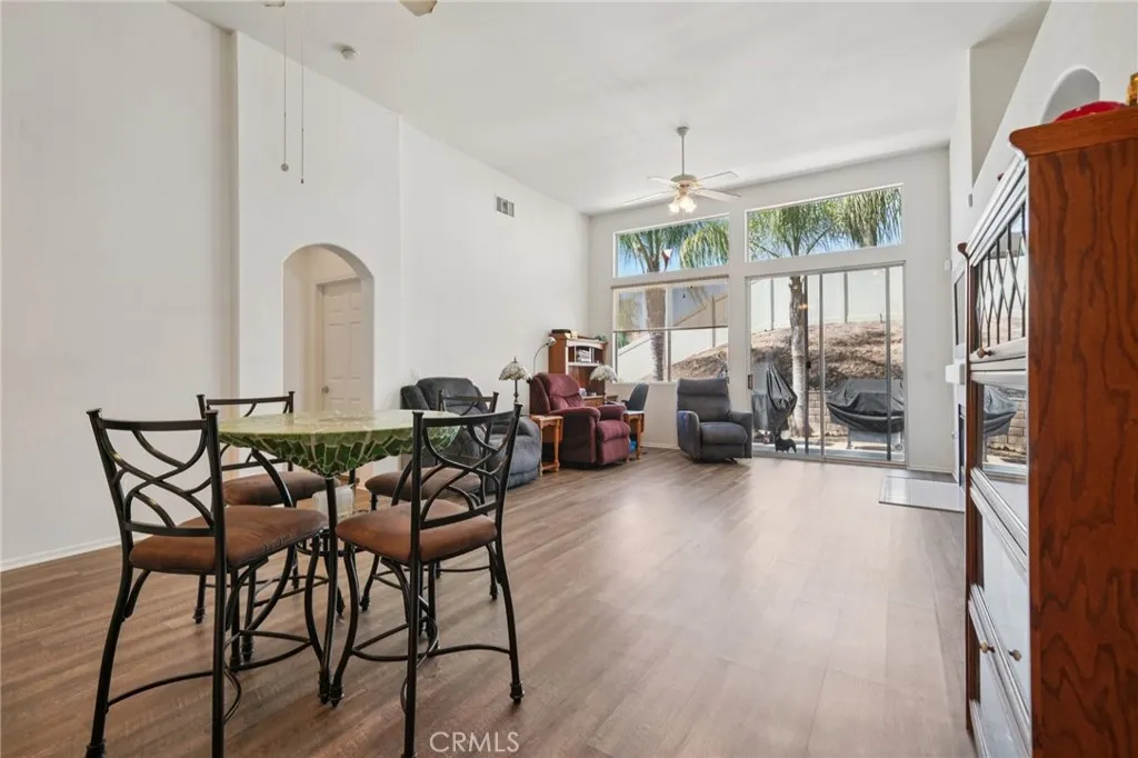 Welcome to 27670 Hub Circle in the beautiful city of Menifee. This single-story home offers four bedrooms, two bathrooms, and a spacious three-car garage with RV parking potential. The front yard showcases drought-tolerant landscaping, while inside youll find luxury vinyl plank flooring throughout. As you step through the front door, the formal living room sets the tone before flowing into the open-concept great room, combining the kitchen, dining area, and family room. The kitchen features a large island with bar seating, oak cabinetry with subway tile backsplash, and dark stainless steel appliances, all overlooking the family room complete with a cozy fireplace. The generous primary suite includes a private slider to the backyard, a double vanity, separate tub and shower, and a walk-in closet. Three additional bedrooms are located on the opposite side of the home, along with an updated guest bathroom featuring a newly tiled shower. The AC unit has replaced last year with a dual fan unit with a ultra violet air purifier giving you hospital grade clean air. The backyard offers plenty of space for entertaining or relaxing, with mature palm trees, storage sheds, and a grass area. With low taxes, NO HOA, and NO solar, this home is the perfect blend of comfort and convenience.