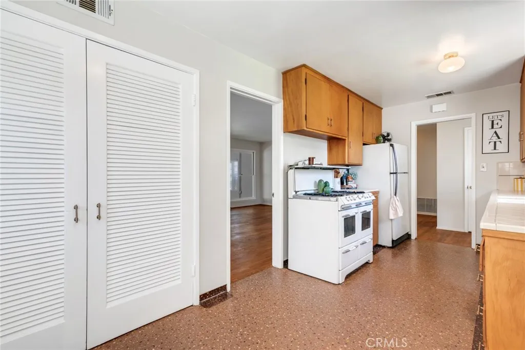 Charming 1950s POOL Home! Step back in time with this well-loved 1950s starter home in Riversides desirable Magnolia Center neighborhood. For buyers who appreciate mid-century style and the nostalgia that comes with it, this home is a rare find. Many of the original details remain, from the vintage ceramic tile bathrooms to the terrazzo-style vinyl floors, offering a true glimpse into the era. The living room showcases gleaming original oak hardwood floors, which extend throughout the home under the bedroom carpeting. Fresh interior paint, new bedroom carpeting, and excellent curb appeal make this home move-in ready, while major updates including central A/C, water heater, roof, and exterior painthave all been recently updated providing peace of mind for years to come. The backyard features a sparkling pool, a rare and valuable addition in this neighborhood. The detached garage offers great ADU potential, and the long driveway could accommodate a small RV or toy trailer. Likewise, there is a large backyard area in addition to the pool area that gives you plenty of room to play, lounge or grow a garden! Make sure to check out the additional storage area behind the garage as well. Located on a quiet street in a beautiful neighborhood that has a genuine Leave it to Beaver feel, this home offers the perfect blend of mid-century charm, practical updates, and sought-after featuresall in one inviting, well-priced package.