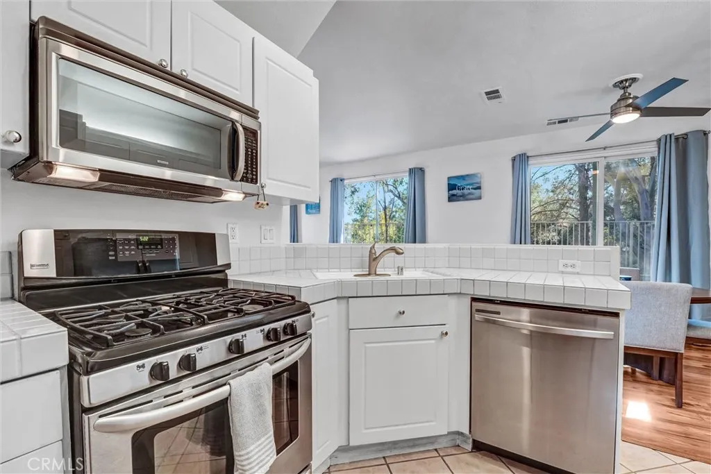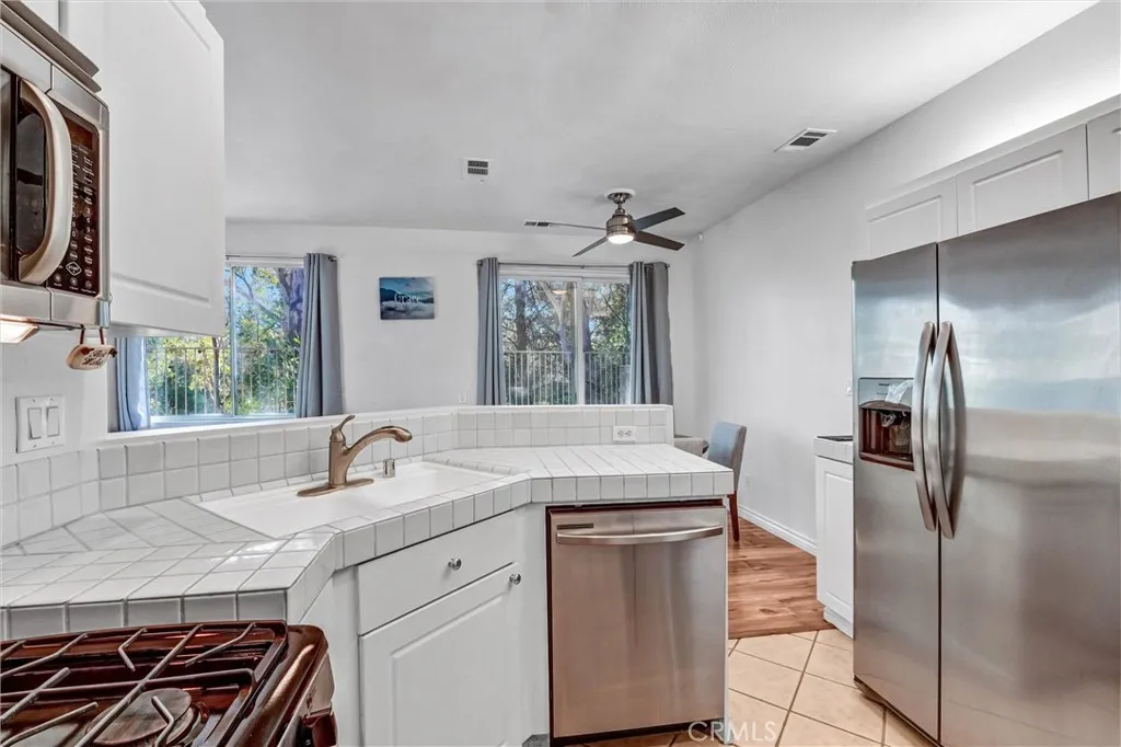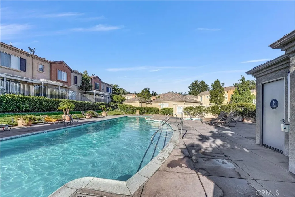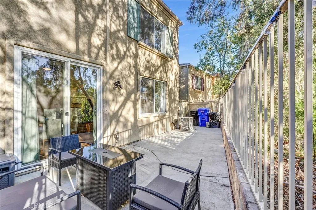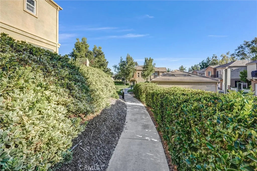 Craving a peaceful tree-lined view while mere moments from city conveniences? This remarkable 2-bedroom, 2-bath townhome in the Rose Arbor Condominiums complex blends an elevated lifestyle with scenic tranquility in Valencia! Resting along a quiet pathway in a rear-unit location, enjoy a sense of privacy and your own leafy prospects of the Paseos. Inside, soft natural light pours through wide windows across wood-style floors, crisp white walls, and recessed lighting. Its open-concept layout flows from the living roomanchored by a fireplace and built-insto the dining area and through to the kitchen, where stainless steel appliances, tiled countertops, and ample cabinetry make cooking feel effortless. Slide open the glass doors to your well-sized patio, perfect for a relaxed brunch or a breezy evening BBQ. Upstairs, the primary suite offers treetop vistas and an ensuite featuring a dual-sink vanity and a shower/tub combo. A second bedroom and full hall bath complete the upper level. Additional perks include an attached 1-car garage with a laundry corner, plus access to the community pool, spa, and picturesque Valencia Paseo trails just beyond your door. Near award-winning schools, restaurants, Bridgeport Park, and shopping, along with proximity to the I-5, this home invites you to experience suburban calm with urban benefits. Come see how this amazing abode could signal the start of your new chapter!