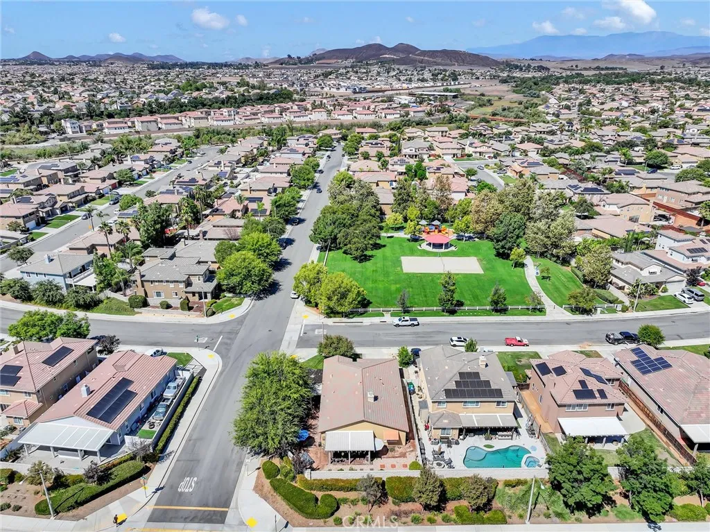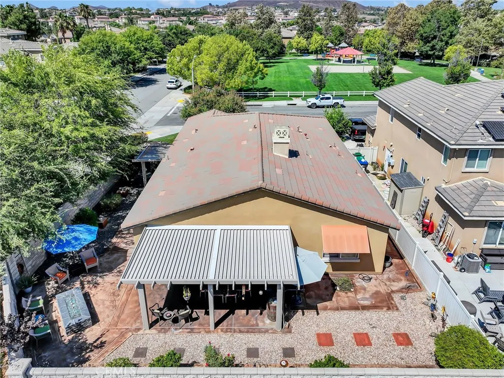 Popular single-story home on a Corner Lot with Open Floorplan. No rear neighbors! 3 Spacious bedrooms & 2 bathrooms. This home is in pristine condition and shows true pride of ownership. Enter through a lengthy hallway with high ceilings that opens up to the Open Great Room. The beautiful gourmet kitchen features generous cabinets, a large island ,stainless steel appliances, and granite countertops. New 2025 Stove, Garbage disposal and Water Heater! Spacious open Great Room with surround sound system & cozy fireplace with raised hearth is the perfect place to entertain. Primary suite is on one side of the home, separating you from the other 2 bedrooms. Primary bathroom with a Separate walk in shower and soaking tub, generous walk-in closet and dual sinks & vanity! There is also a huge walk in closet! Secondary bedrooms are large , one featuring a Barn Door entrance! Additional features include an Indoor Laundry room with storage cabinets, Plantation Shutters, Ceiling Fans and beautiful oversized 20" tile flooring throughout the living spaces. Laminate flooring in bedrooms. Outside, the backyard features a fully landscaped, low maintenance yard with no rear neighbors! Pick your own fruit from the lemon & lime trees! Large covered alumawood patio cover, with custom hardscape, and show stopper built in fire pit with fire glass. Block wall fencing, with vinyl fencing on one side. Extra large 2 1/2 car garage! Located in the award-winning Temecula school district, in the Dutch Village neighborhood near sports parks, playgrounds, walking trails and shopping, this home has it all!
