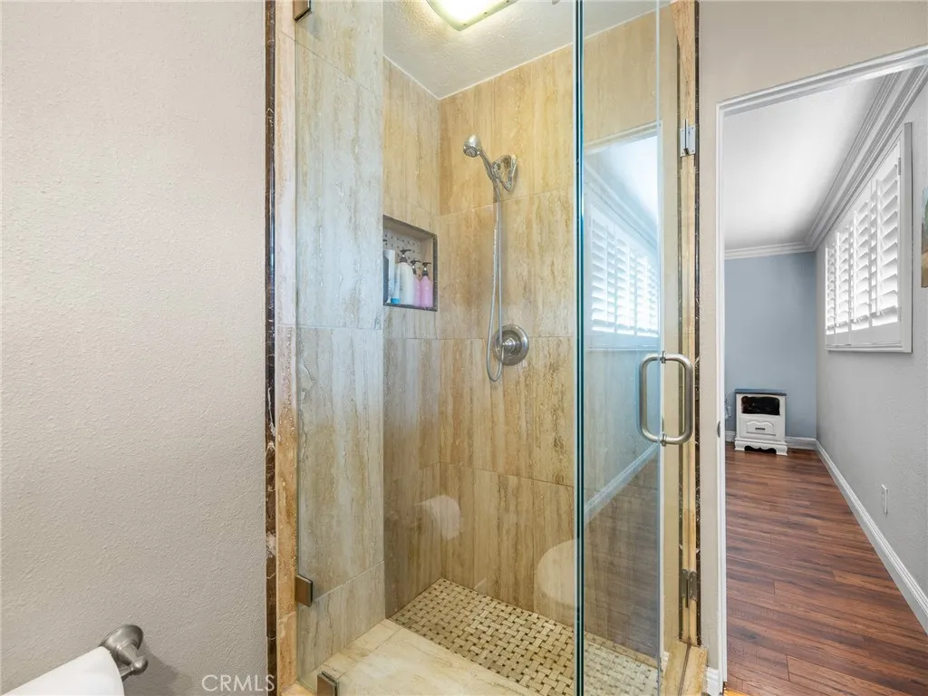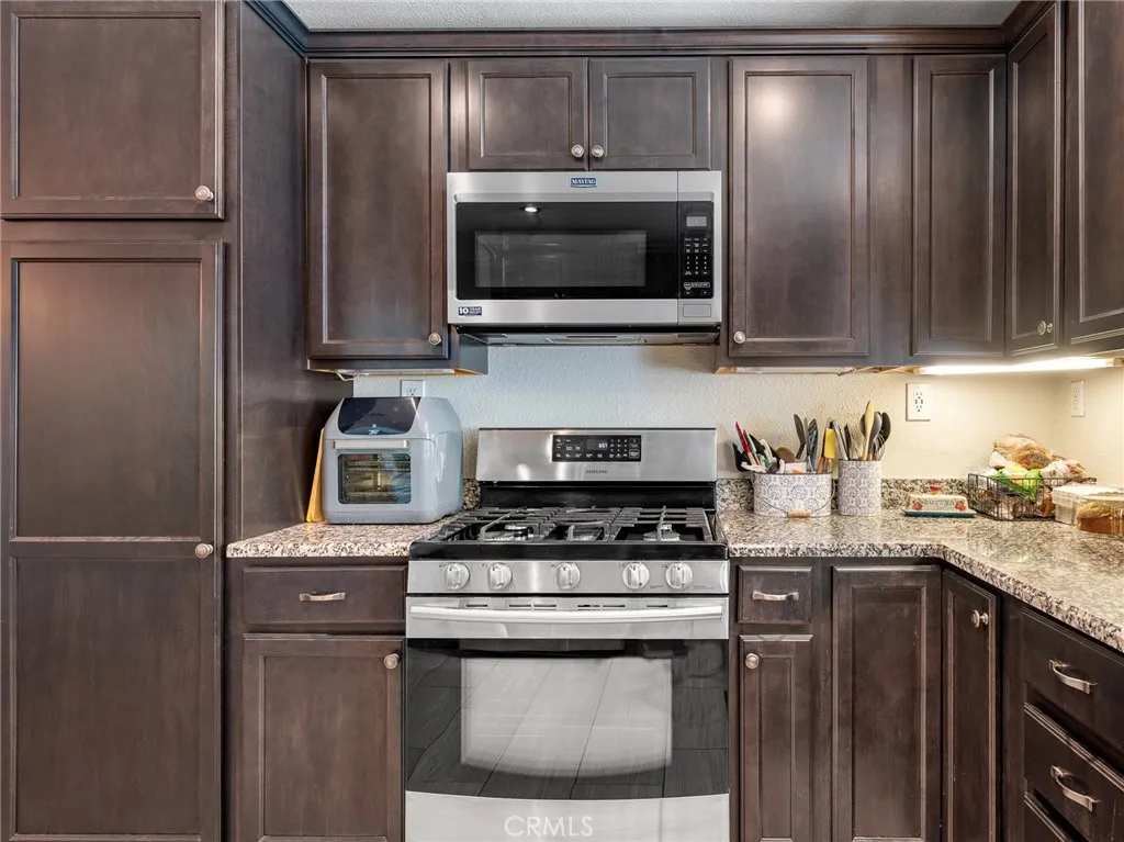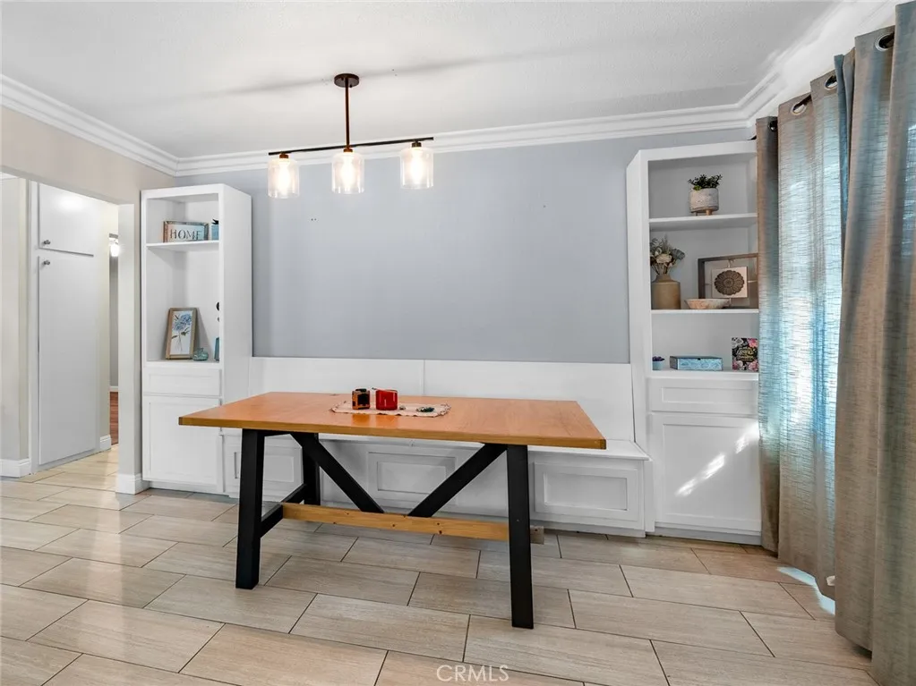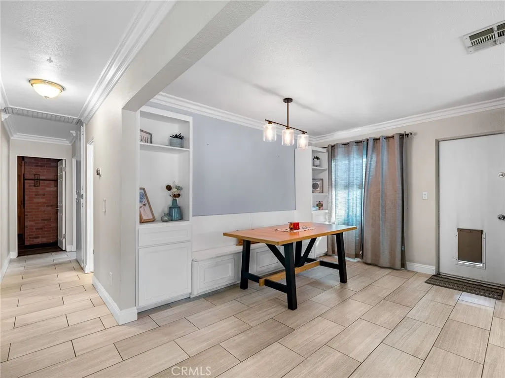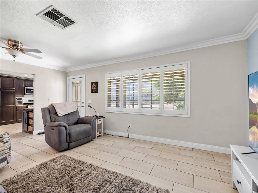 Welcome to this beautifully remodeled 3-bedroom, 2-bath home in Rialto, offering 1,156 sq. ft. of living space on a landscaped 7,300 sq. ft. lot. The exterior features a mature avocado tree, welcoming porch, flagstone accents, and atrium-style front door. Electric driveway gates with alley access, security cameras, exterior lighting, sprinkler system, an 18x26 carport, two-car attached garage, and storage shed provide both convenience and security. Major updates include a newer roof, a 2023 HVAC system, upgraded plumbing from the main line to the kitchen and baths, and a 2019 water heater. A leased solar system offers energy efficiency. Inside, the home is move-in ready with fresh paint, crown molding, new windows, plantation shutters, tile flooring in living areas, and laminate in bedrooms. The living room is wired for surround sound, and every room has USB outlets. The kitchen features granite countertops, stainless steel appliances, a farmhouse sink, and a custom dining nook with built-in bench and shelving. The primary suite offers two closets and a spa-style bath with custom tile shower and glass doors. The guest bath includes granite counters, pedestal sink, and walk-in shower. Secondary bedrooms are stylish, with one showcasing a New York City firehouse vibe with brick accent wall, sliding barn door, and sconce lighting. Additional highlights include hallway storage, ceiling fans throughout, a Nest thermostat, and garage cabinetry with washer and dryer hookups. The backyard is private with block wall and wood fencing, offering plenty of outdoor living space. Located