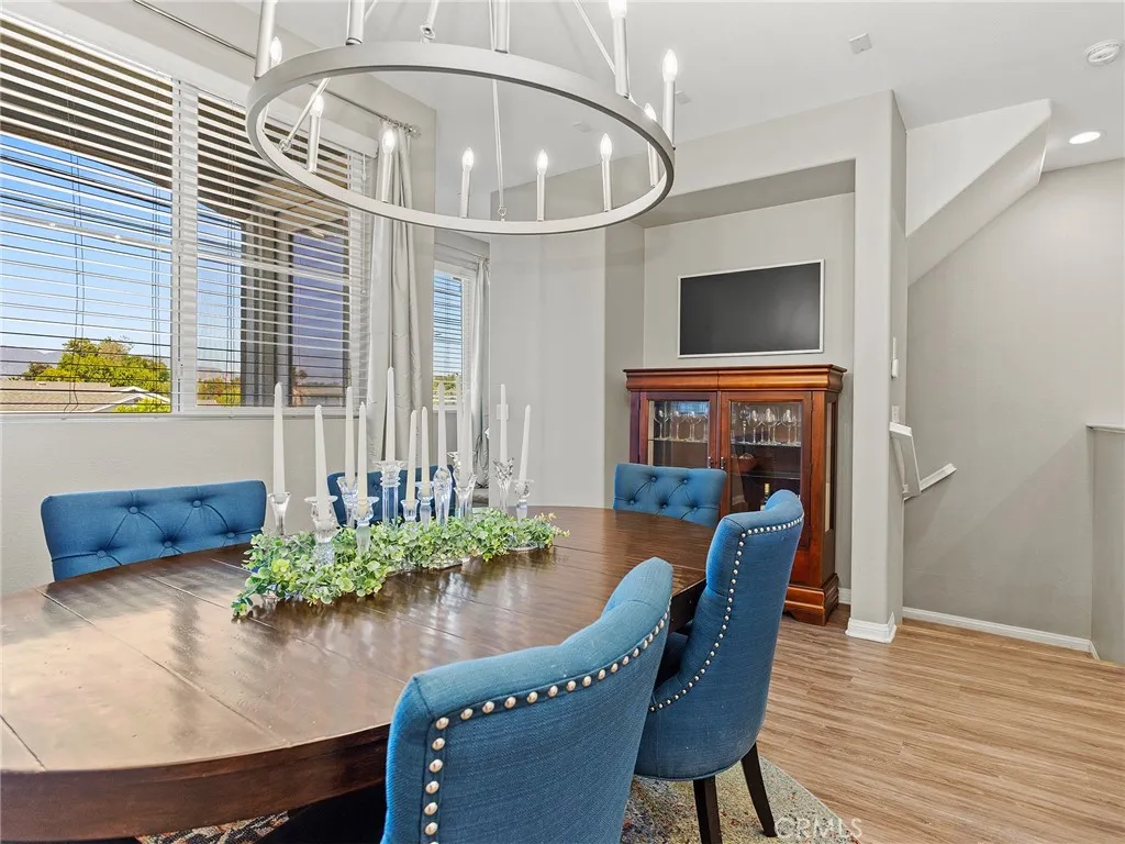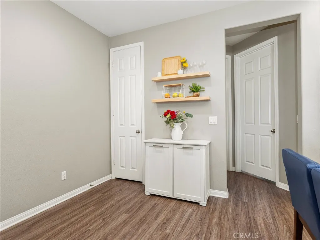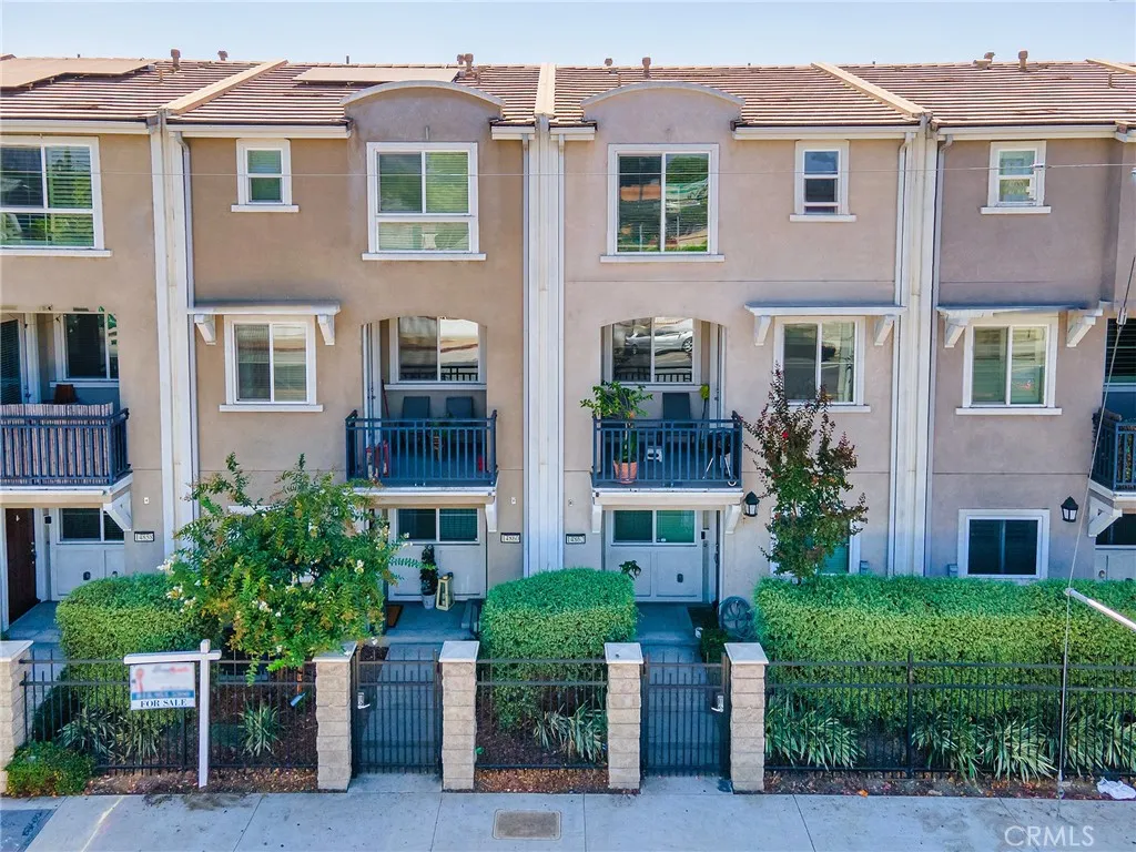 Welcome to this beautifully maintained tri-level single-family home nestled in a desirable gated community. Built just 8 years ago and offering 1,613 square feet of thoughtfully designed living space, this 3-bedroom, 3-bathroom residence blends comfort, style, and efficiency, including fully paid-off solar panels! Step through the gated front porch into a formal entry that sets the tone for the rest of the home. The first level features an attached 2-car garage that opens into a versatile flex room, perfect as a home office, gym, or guest retreat. Upstairs on the second level, you'll find an inviting open-concept layout that seamlessly connects the formal dining room, spacious living area, and a chef-inspired kitchen. The kitchen is a true showstopper, complete with a large center island, sleek white cabinetry, quartz countertops, stainless steel appliances, and recessed lighting. A charming outdoor patio is just off the living space, ideal for morning coffee or evening relaxation. The third level is home to two main bedrooms, each offering walk-in closets and en-suite bathrooms with quartz countertops and walk-in showers. A dream primary suite awaits, and the layout smartly separates the bedrooms with convenient utility and laundry closets. Throughout the home, you'll find wood-toned laminate flooring in the living areas, tile in the bathrooms, and cozy carpet in the bedrooms, stairs, and hallway. Wired for surround sound, this home enhances your lifestyle with an upgraded audio experience throughout. Enjoy year-round comfort with central heating and air, and take full adv