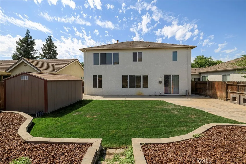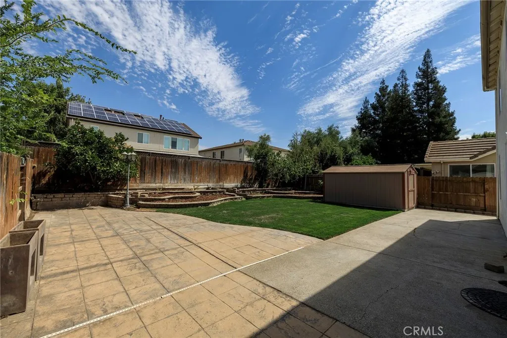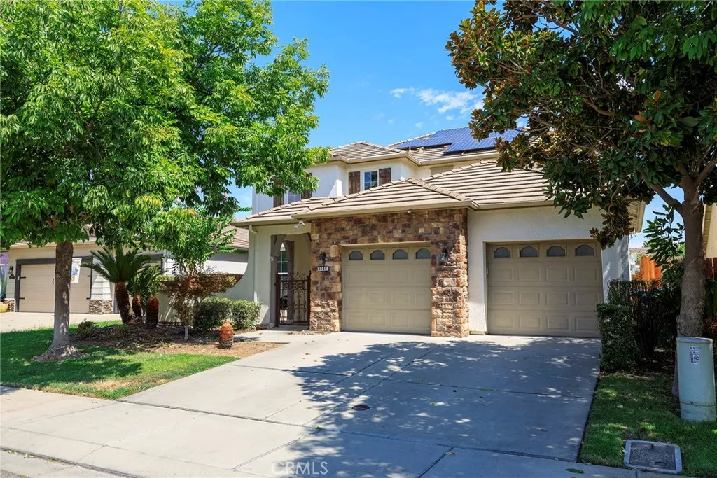 This Merced Home with 5 Bedroom, 3,054sf of thoughtfully designed living space. The moment you arrive, you'll be welcomed by a charming front courtyard that sets the tone for the exceptional home beyond. Step inside to find beautiful hardwood floors flowing throughout expansive open living areas, perfect for both daily life and entertaining. The heart of the home features a generous kitchen with a large island and premium stainless steel appliances, ideal for culinary adventures and family gatherings. Downstairs Bedroom with full bath provides flexible living options for guests or multigenerational families. Upstairs, you'll discover a versatile loft space along with thoughtfully organized bedrooms featuring custom closet shelving systems. The upstairs laundry adds convenience to your daily routine. Throughout the home, custom built-ins maximize both storage and style. Outside, the freshly landscaped backyard offers a private retreat complete with a practical tool shed and attractive retaining planters. The 3-car tandem garage provides ample parking and storage. Best of all, the owned solar system means energy efficiency and lower utility costs for years to come. This family living space is quiet, desirable, and near Davenport Park. A Must See!!