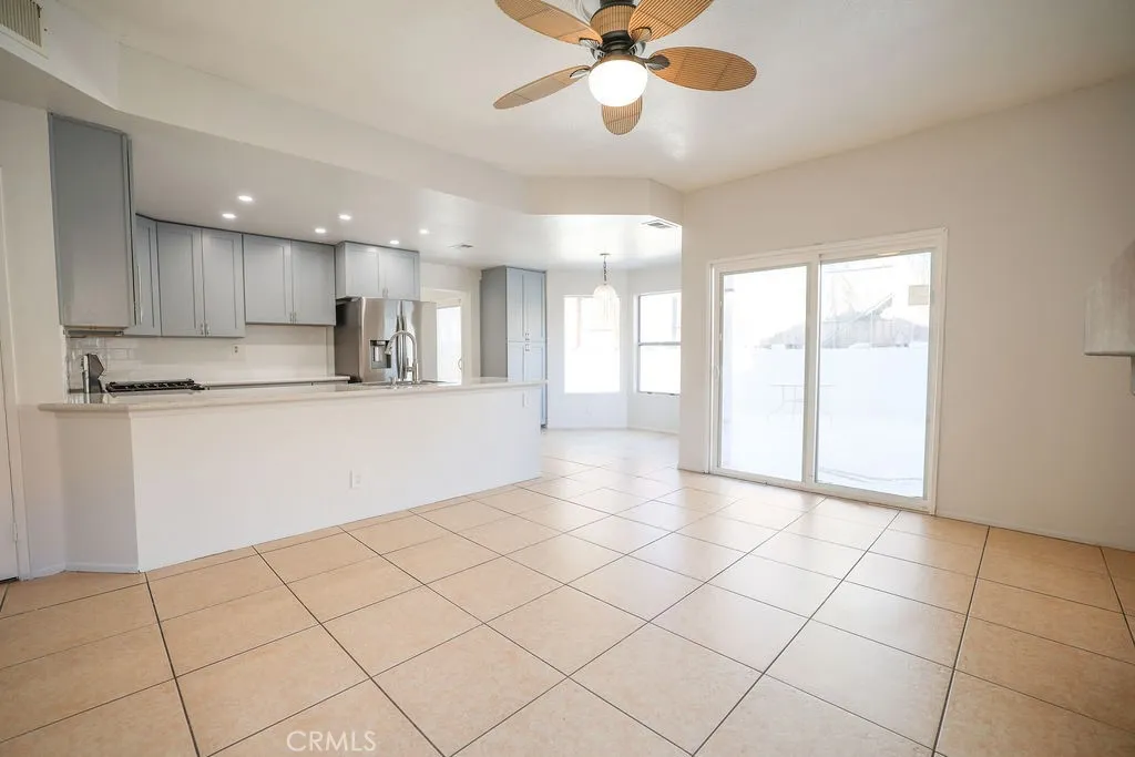 WELCOME HOME to Sunnymead Ranch! This stunning 5-bedroom, 3-bathroom residence is nestled in the highly sought-after community of Moreno Valley. From the moment you arrive, youll notice the freshly painted exterior, beautifully updated landscaping, and spacious 3-car garage. Step through the double doors into a bright, airy home with soaring ceilings and abundant natural light. The formal living and dining areas feature brand new Luxury Vinyl Plank flooring and fresh interior paint, creating a modern and inviting atmosphere. The heart of the home is the fully remodeled kitchen, showcasing new cabinets, quartz countertops, stainless steel appliances, and a farmhouse sink. A cozy breakfast nook flows seamlessly into the family room, complete with a charming fireplaceperfect for gatherings. Downstairs, youll find a private bedroom and remodeled full bath with a new vanity, ideal for guests or multigenerational living. Upstairs, a spacious loft provides extra living space, flanked by three bedrooms. The primary suite offers tranquil views of the backyard and a beautifully updated bathroom with a new vanity, making it the perfect retreat. The backyard is designed for relaxation and entertainment, featuring a serene pond with the soothing sound of running water and ample space for outdoor dining. This home is energy efficient with dual A/C units and solar panels that the buyer will need to take over payments on. As a resident of Sunnymead Ranch, youll enjoy resort-style amenities including a private lake, pool and spa, sports courts, parks, and picnic areas. Dont miss the chance