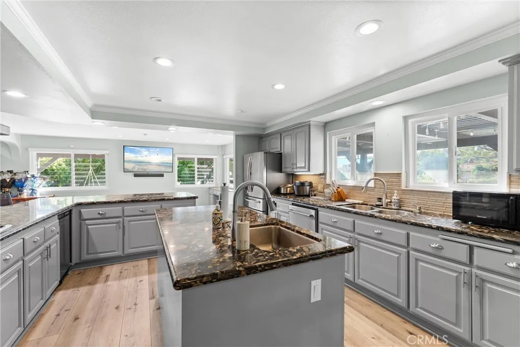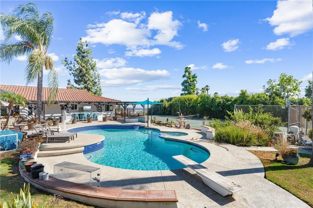 Welcome to 1445 Darlene! This custom-built, single-level home offers a formal entry through impressive double doors, high ceilings, and upgrades throughout. It features 4 bedrooms and 4 bathrooms within 4,000 interior square feet. Situated on a sprawling, oversized, flat lot, it boasts beautiful views and a variety of amenities including a pool, spa, tennis court, fire pit and koi pond truly resort living at its best! The interior includes a primary en-suite with an additional open-room closet, a secondary primary en-suite, two additional oversized bedrooms, a family room, living room, and a dining room with a skylight that brings in an abundance of natural light. The kitchen is open to the family room and features an island, ample counter space, a pantry, and counter seating. It overlooks the backyard pool, tennis court, and a covered patio with an outdoor seating counter. A 4-car finished garage with storage and epoxy floors is attached. The home provides a light, bright, and airy feel throughout. The exterior is equally impressive with lush landscaping, a huge grassy area, a fruit tree grove, and a gazebo. The gated property offers privacy and easy access, cul de sac, additional parking, RV potential, and a separate guest parking pad.