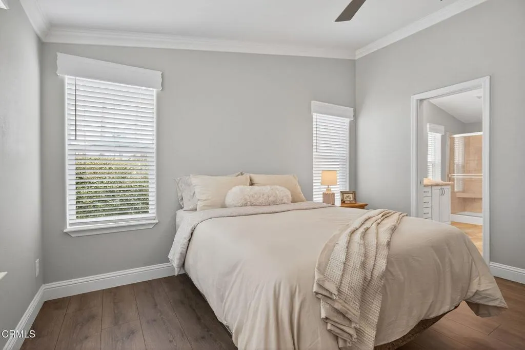 Your beautiful beach home awaits! Like new, gorgeous and move in ready! This home has everything you need starting with the welcoming front porch, perfect for fresh air as you relax taking in the ocean breezes. With 3 bedrooms and 2 baths this home offers space and light with a great floor plan separating the two guest bedrooms from the spacious primary suite. The heart and center of this home is open, bright and welcoming with a large kitchen island that flows seamlessly into the living area complete with a beautiful remote controlled fireplace. The kitchen is an entertainer's delight with lots of designer cabinetry, stainless appliances, kitchen island and a breakfast area. Thoughtful details include crown molding, recessed lighting, solar tubes, high ceilings, decorative ceiling fans, stylish pendant lighting as well as window blinds and cornices. The primary en suite has two large closets, a walk in shower and dual sink vanity. A large laundry room with ample storage adjacent to the kitchen leads to the carport entrance. Outside you will find tandem, covered, carport parking, a shed for extra storage and a small back yard area. Marina mobile home park is one of the most desirable 55 & better communities and offers an abundance of resort style amenities. Enjoy a heated pool and spa, gym, extra large clubhouse with stage and resort style kitchen. A gathering room with a with fireplace, view of the lake, billiards, card room, library and even a car wash area. There are many community events year around. Just steps away is the Ventura Harbor and beaches with dining, enterta