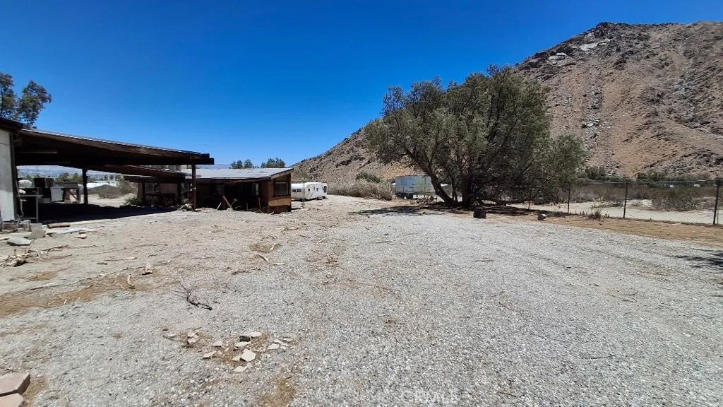 A unique 10-acre property consists of two adjacent 5-acre parcels in the Windy Point area of Palm Springs. Located off Hwy 111 and Overture Drive. Take Overture to Purple Sage, turn left toward the mountains. Purple Sage turns into Sterling Trail. Look for the large gate right in front of you. It is a great location for a residence, housing tract, or mobile home park. Zoning would need approval from the County. The property was used as a residence and horse ranch. The property features a few mobile homes, several outbuildings, and a large shop. Value lies in the land; the mobile homes on the property require major rehabilitation or removal. Property is offered in as-is condition. The seller is unfamiliar with the condition and local regulations. The buyers are to satisfy themselves as to condition, possible uses, zoning, building codes, etc.