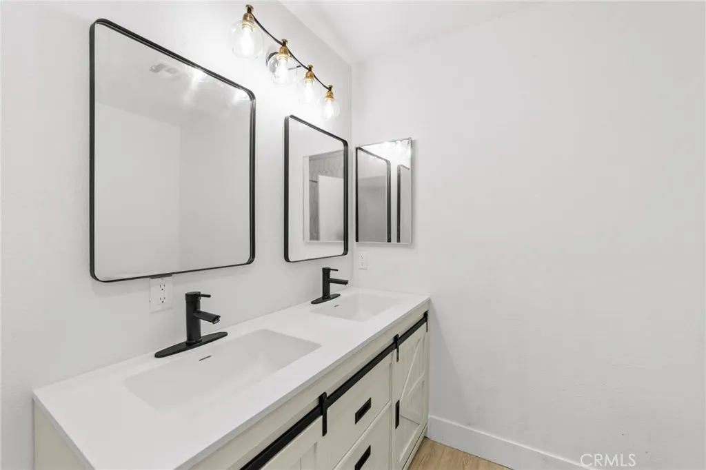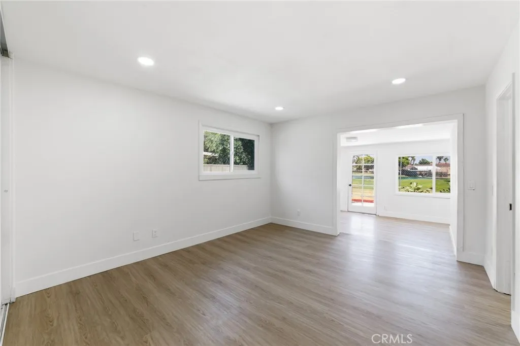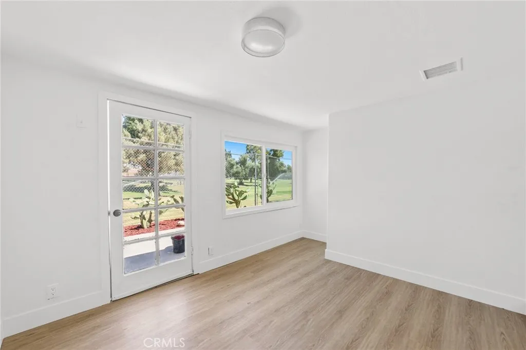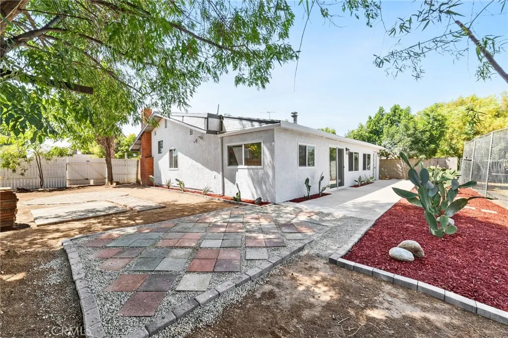 Nestled in the heart of Moreno Valleys coveted Edgemont neighborhood, this fully remodeled 3-bedroom, 2-bath gem is a true standout. Offering modern updates and a flexible bonus room that can easily serve as a 4th bedroom or guest suite, this home is move-in ready and wont last long! The charming gated front yard welcomes you with mature succulents, a flourishing grapevine, a majestic palm tree, and a fruitful peach tree. With a 2-car garage, a fenced area perfect for a dog run or garden, and ample curb appeal, the exterior sets the stage for whats inside. Step into an open-concept living space awash with natural light, courtesy of brand-new dual-pane windows. Recessed lighting and sleek luxury vinyl plank flooring flow throughout, creating a warm and inviting atmosphere. The chefs kitchen is a showstopper, boasting stunning Calacatta gold quartz countertops, top-of-the-line stainless steel appliances, and a large peninsula bar, perfect for entertaining or casual family meals. Relax in the primary suite, where youll wake up to breathtaking views of the lush golf course. The spa-inspired en-suite bath features dual vanities and a beautifully tiled walk-in shower, offering the ultimate retreat. A versatile flex space within the suite is perfect for a nursery, office, or serene reading nook. Two additional bedrooms plus the bonus room provide ample space for family, guests, or whatever your lifestyle demands. The main bath dazzles with a soaking tub, updated vanities, and a unique distressed-style picket fence tile surround, adding character and charm to the space. Outside, th