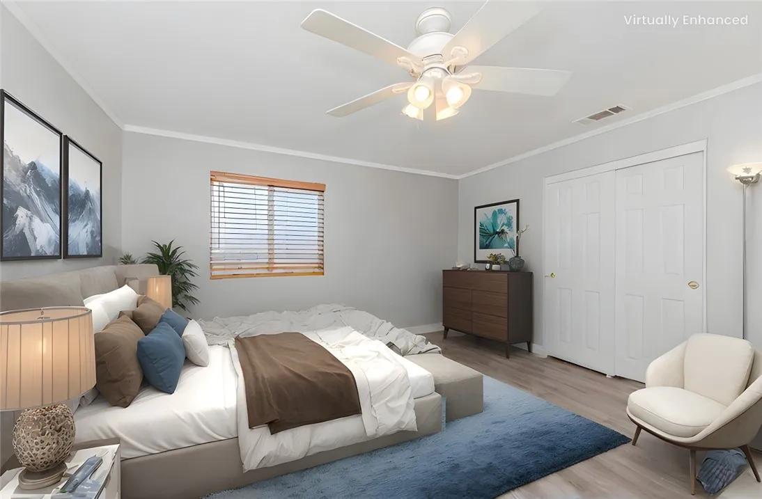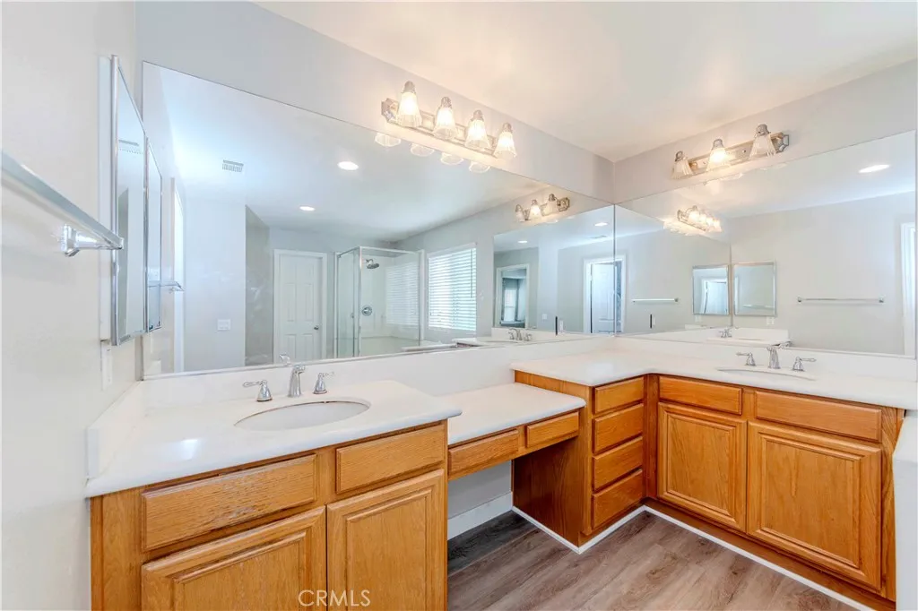 VA & FHA eligible Property is an attached SFR, not a condominium! *THE BEST VALUE IN TOWN* Located in the desirable gated Rancho Park Ventures community. Prime lot with privacy. This well-kept single-family attached home offers 4 bedrooms and 3 bathrooms, including a downstairs bedroom with a full bathideal for guests or extended family. The open layout features a bright living room with high ceiling, fireplace, adjoining dining area, and an updated kitchen with ample cabinets, pantry, and counter space, plus a breakfast nook. Upstairs, the spacious primary suite offers room for a king-size bed and a sitting area. The primary bathroom includes dual sinks, a vanity, and a large walk-in closet. Two additional upstairs bedrooms share a full hallway bath. A large laundry room with sink and built-in storage is conveniently located on the main floor. Upgrades include recessed lighting, newer wood-look flooring, and neutral interior paint. The private backyard with a covered California room is ideal for outdoor use. Attached side-by-side 2-car garage with direct access. Community amenities include a gated pool, spa, and clubhouse with low HOA dues.