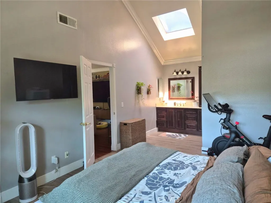 Welcome to your private retreat in the sought-after Lakeridge Whittier community! This beautifully upgraded end-unit condo offers the perfect blend of comfort, style, and convenience. Step inside and be greeted by soaring ceilings and stunning floor to ceiling windows that fill the home with an abundance of natural light. The open concept living area flows seamlessly to a spacious covered deck, ideal for morning coffee, weekend barbecues, or simply enjoying the serene surroundings. The thoughtfully newer kitchen features crisp white cabinetry, timeless granite countertops, stainless steel appliances, custom pullout shelving, and modern farmhouse-inspired lighting, perfect for cooking and entertaining. The master suite is equally inviting, complete with a large walk-in closet, skylight, and recently updated waterproof laminate flooring and baseboards, creating a relaxing sanctuary to unwind. Engergy efficient doublepane windows with loe-366 rated glass to block heat and UV rays, keeps the home properly insulated. Enjoy the ease of in unit laundry, a newer water heater, and a private three sided garage located directly below the unit for secure parking and additional storage. Lakeridge is a tranquil, gated community surrounded by lush landscaping and peaceful creeks, with resort style amenities including four swimming pools, relaxing spas, saunas, and tennis courts all maintained by the HOA. An additional parking space is also available through the HOA for $60 monthly fee. Perfectly located near shopping, dining, and easy freeway access, this home is move-in ready and waiting