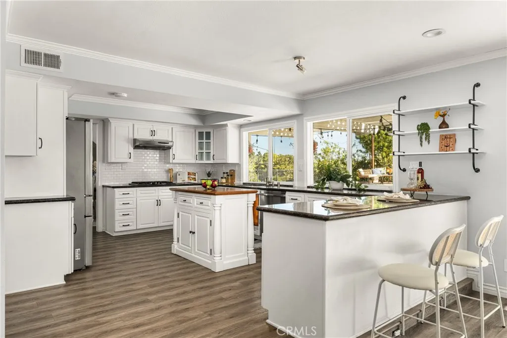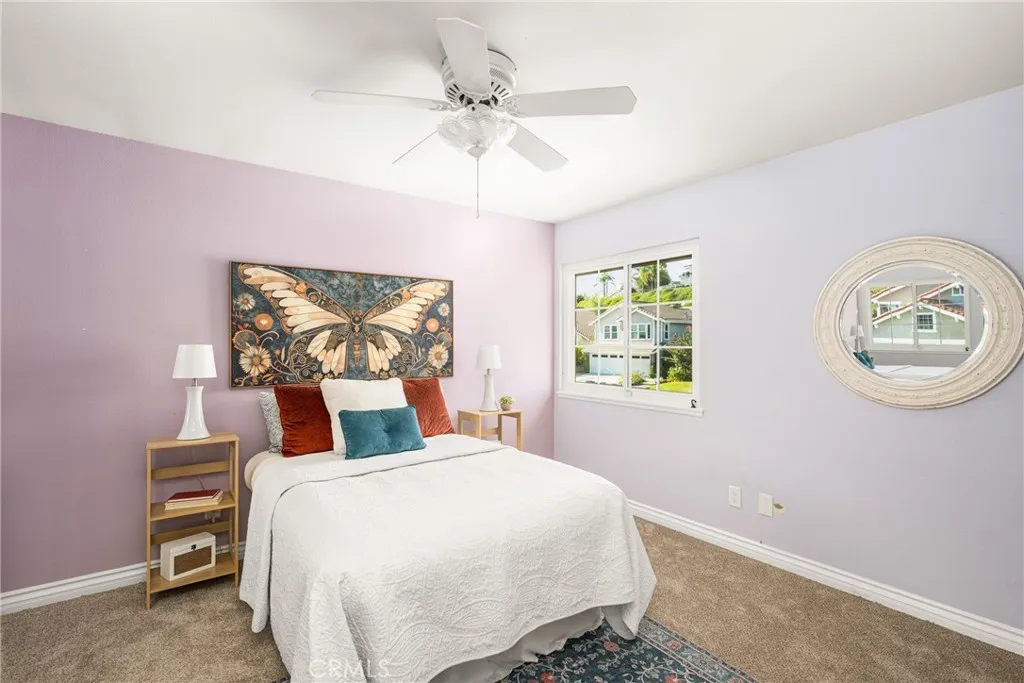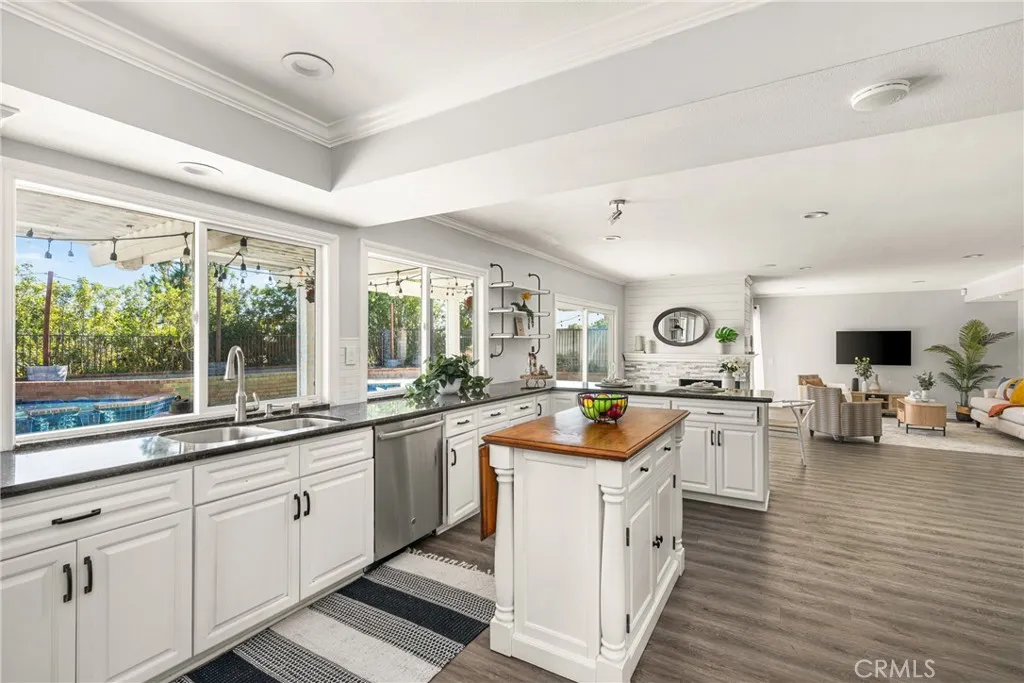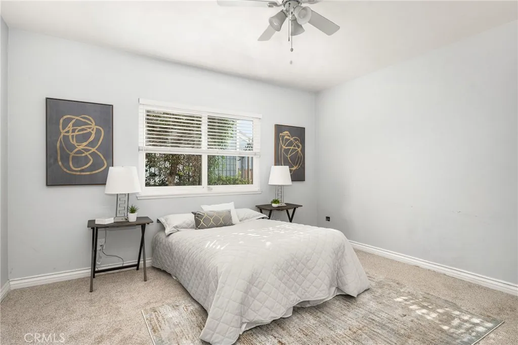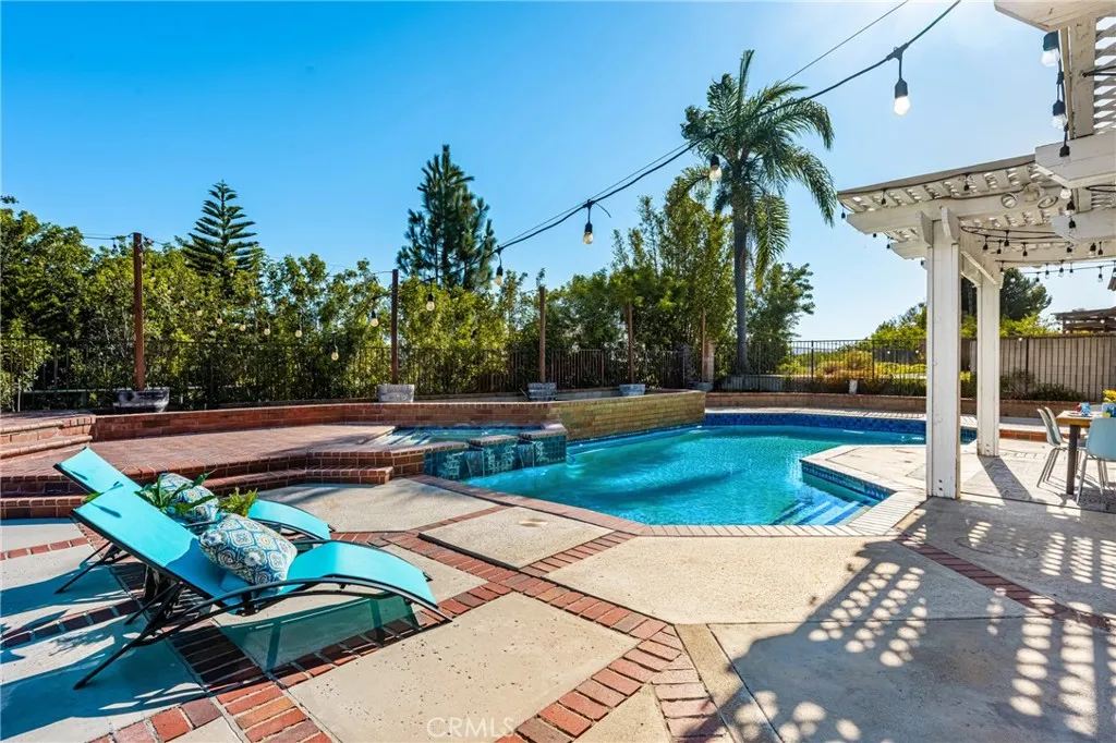 Nestled in a quiet neighborhood, this home is located within the pick of award-winning schools, with nearby sports facilities and parks. Conveniently close to shopping, dining, and freeway access. An ideal blend of comfort, convenience, and community. This stunning 5 bed, 3 bath home features vaulted ceilings and brand new carpet. Expansive living spaces with fireplaces, large windows and a first floor bedroom and full bathroom. Gourmet kitchen with granite counters, upgraded cabinetry, breakfast nook, crown molding, desk area, and glass-front cabinets. Oversized master suite with soaring ceilings, extensive closet space, tub, separate shower, and skylight. Additional bedrooms are generously sized with mirrored closet doors. Inside laundry room, alarm system, and LED lighting throughout. Entertainers backyard with pool and spa, covered patio, and extensive brickwork.