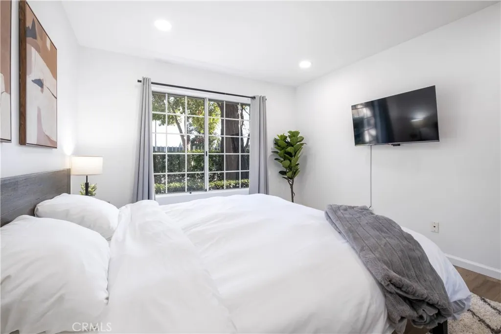 Breeze into this beautifully and recently remodeled ground-floor one-bedroom condo, perfectly situated in the desirable gated community of Chelsea Court. Every detail has been thoughtfully updated to combine modern elegance with everyday comfort. The open and airy floorplan is enhanced by recessed lighting, luxury vinyl plank flooring, and abundant natural light. The newly designed custom kitchen is a true centerpiece, featuring sleek shaker cabinets, quartz countertops, a custom tile backsplash, and stainless-steel appliancesincluding a range, microwave hood, and dishwasher. The single-basin undermount sink with pull-down faucet adds both style and function. Retreat to your spacious bedroom with a generous walk-in closet, while the remodeled bathroom showcases timeless tile flooring, a shaker vanity with quartz counters, and chic matte black finishes. Convenience is key with an in-unit laundry closet, central heating and air conditioning, and an attached garage. Step outside to enjoy your private patioideal for relaxing or entertaining. Chelsea Court offers resort-style amenities including a sparkling pool, two relaxing spas, fitness center, and a BBQ area. Located in the heart of South Coast Metro, this condo is in one of Orange Countys most vibrant neighborhoods. It places you at the epicenter of premier shopping, dining, and entertainment. Indulge in world-class experiences at nearby South Coast Plaza, catch captivating performances at the Segerstrom Center for the Arts, and immerse yourself in the culture at the Tony Award-winning South Coast Repertory. With convenient
